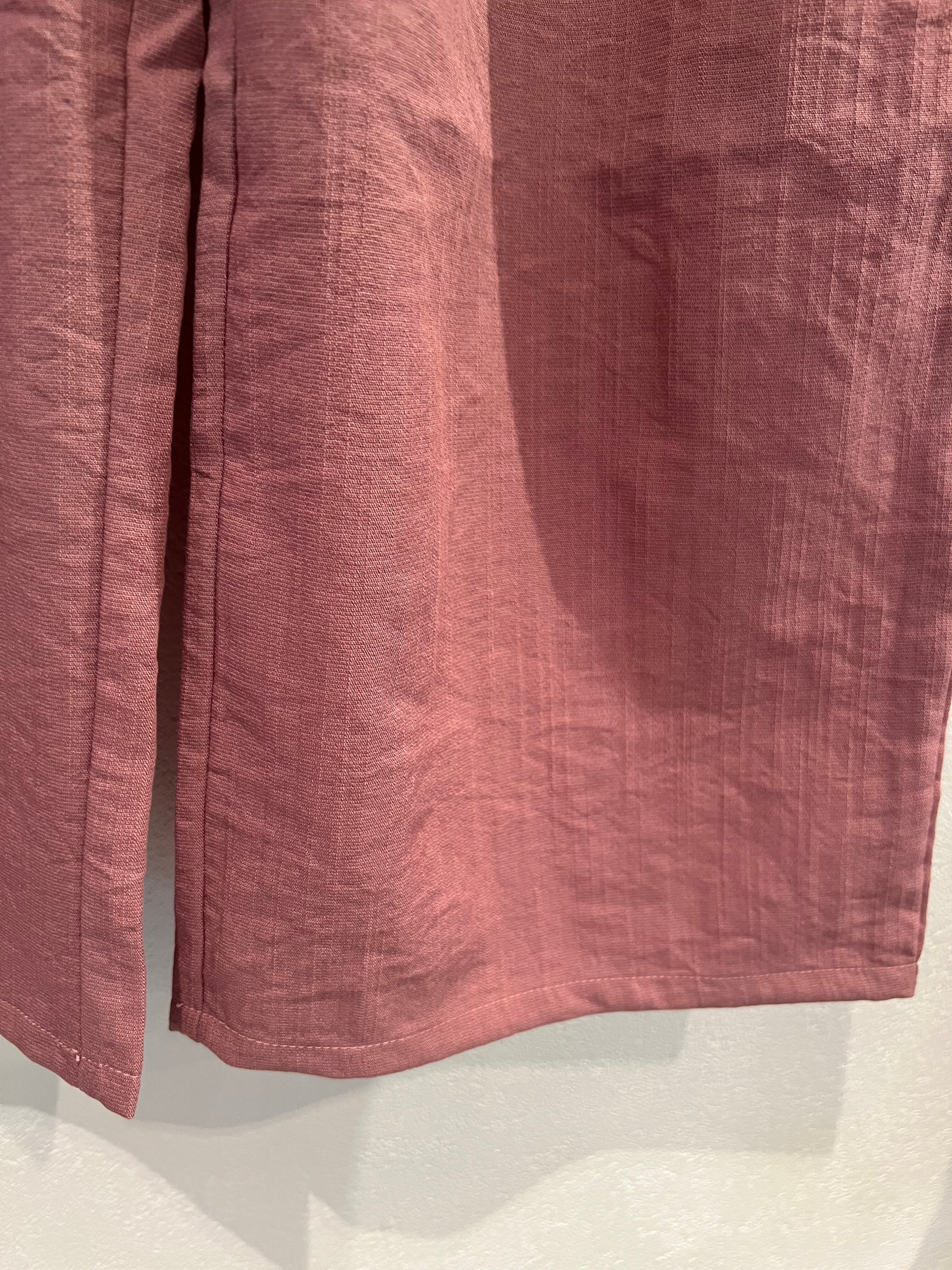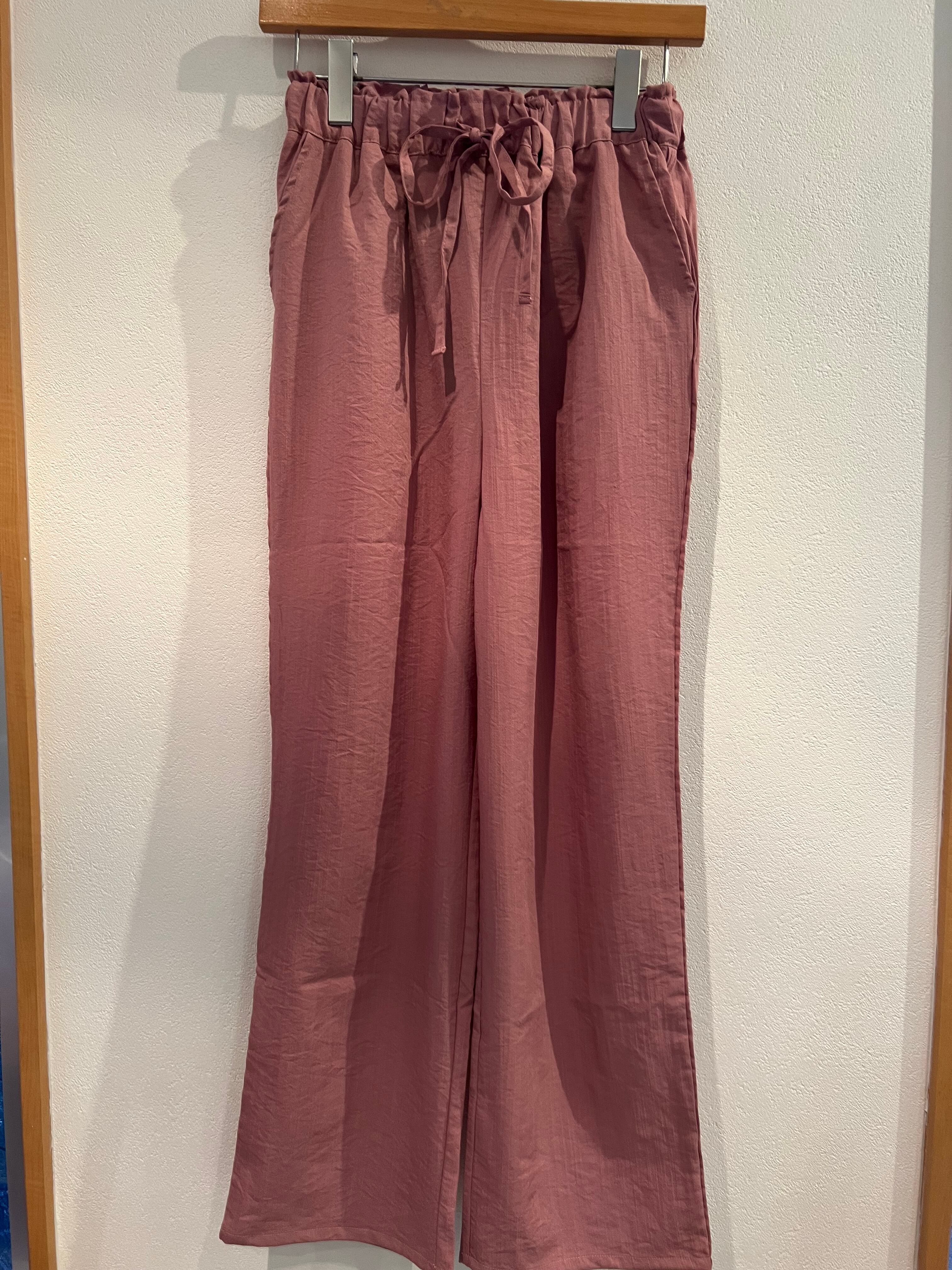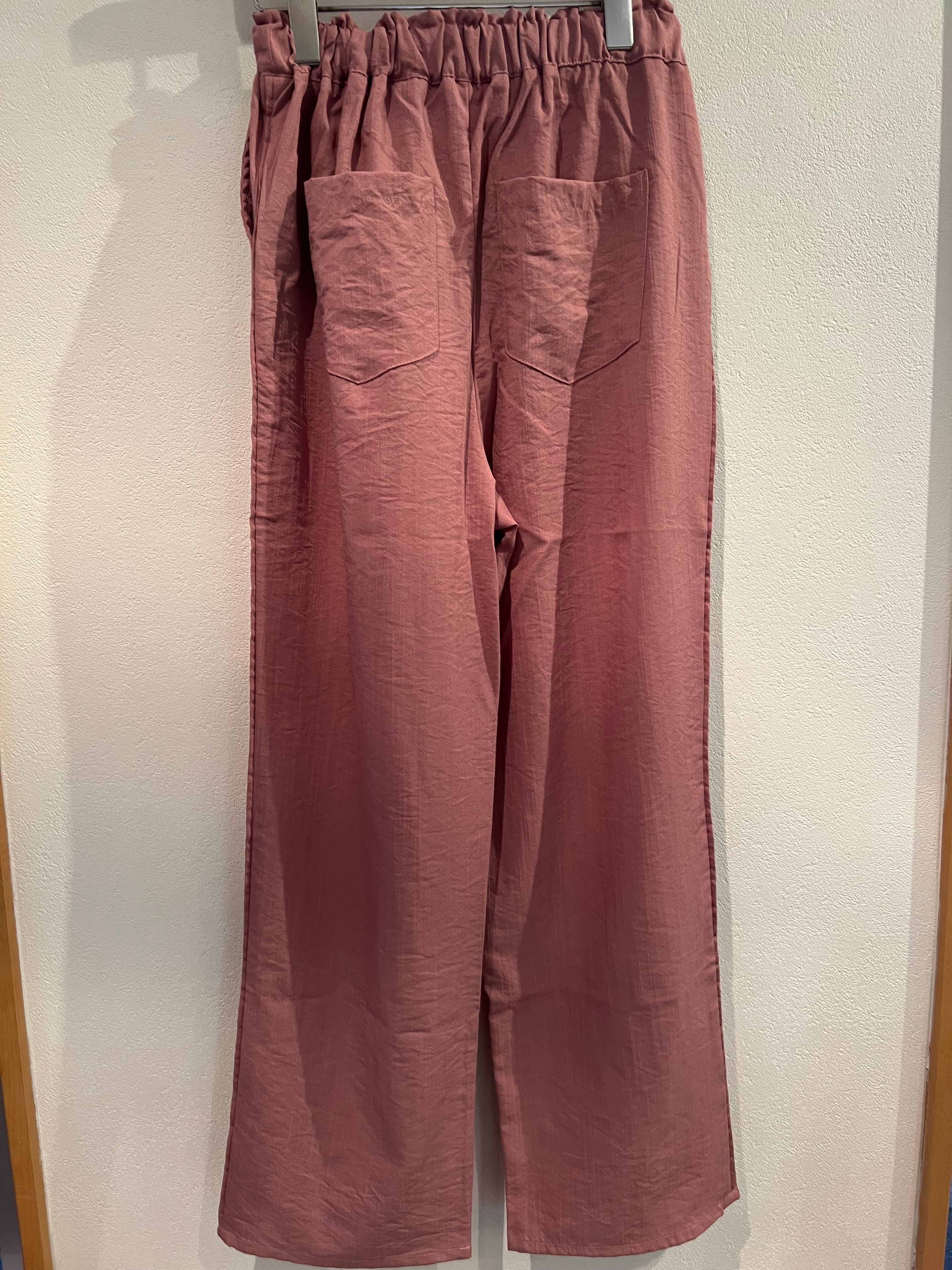 裏地なしで軽い着心地とウエストはゴム使用でストレスフリー、後ろポケットもありヒップアップ効果のあるデザインです。