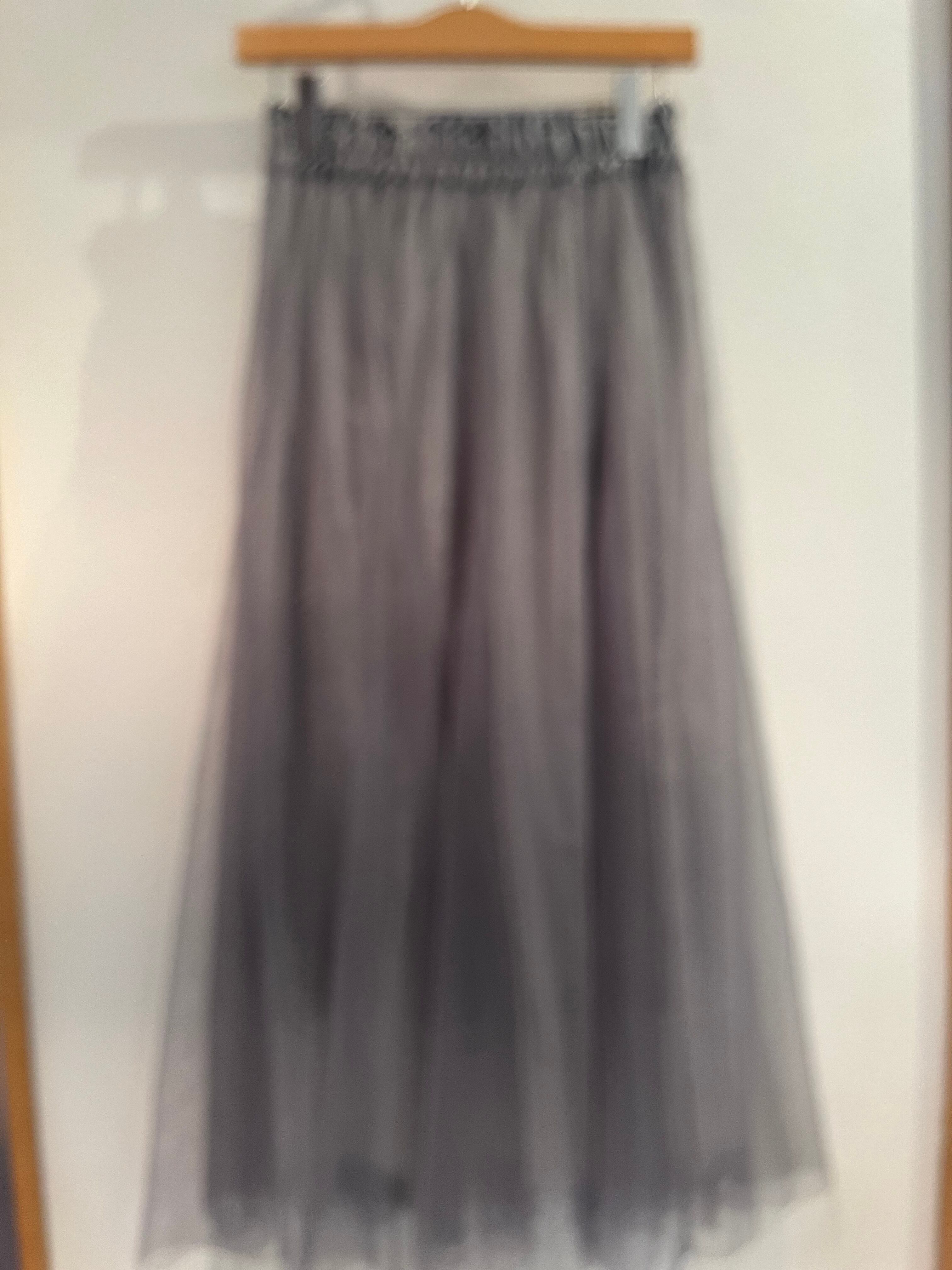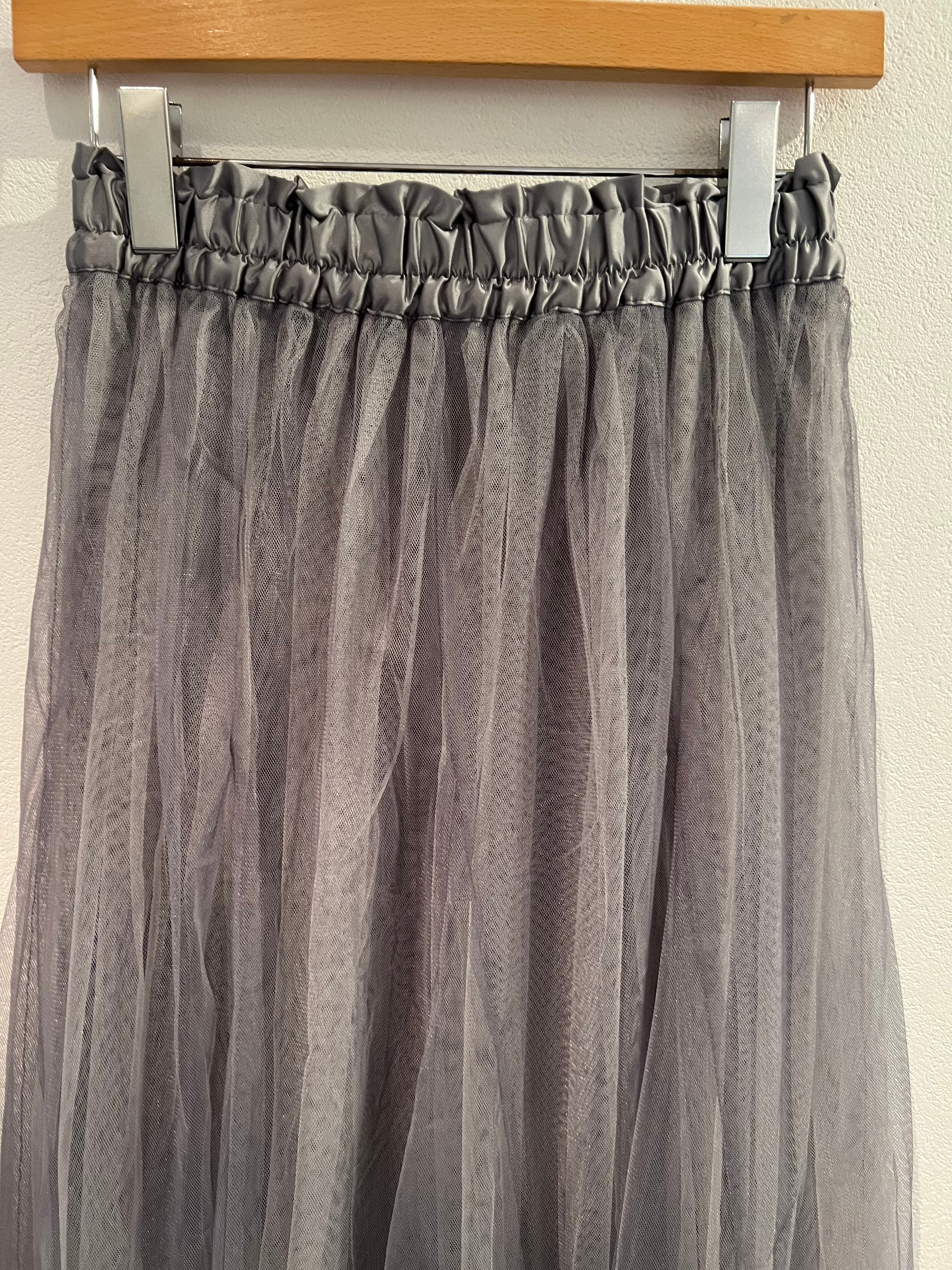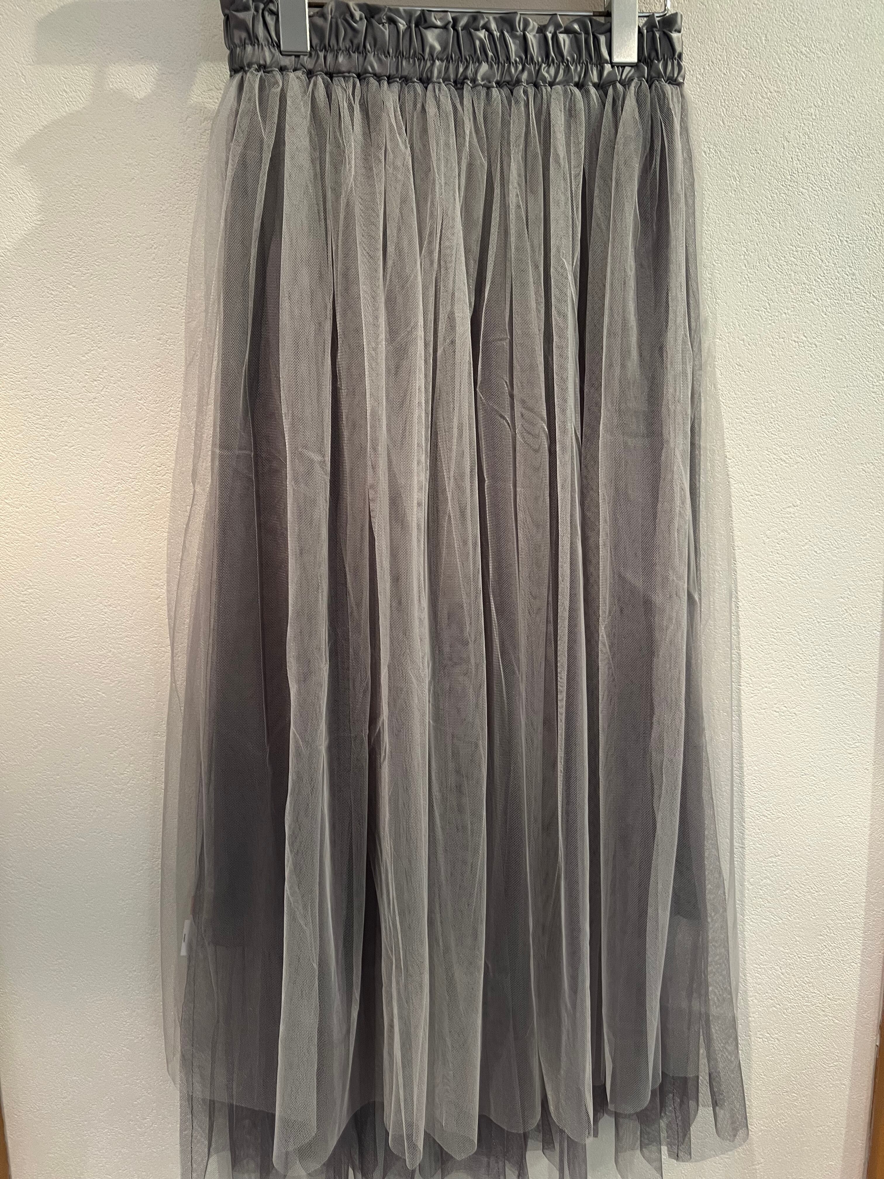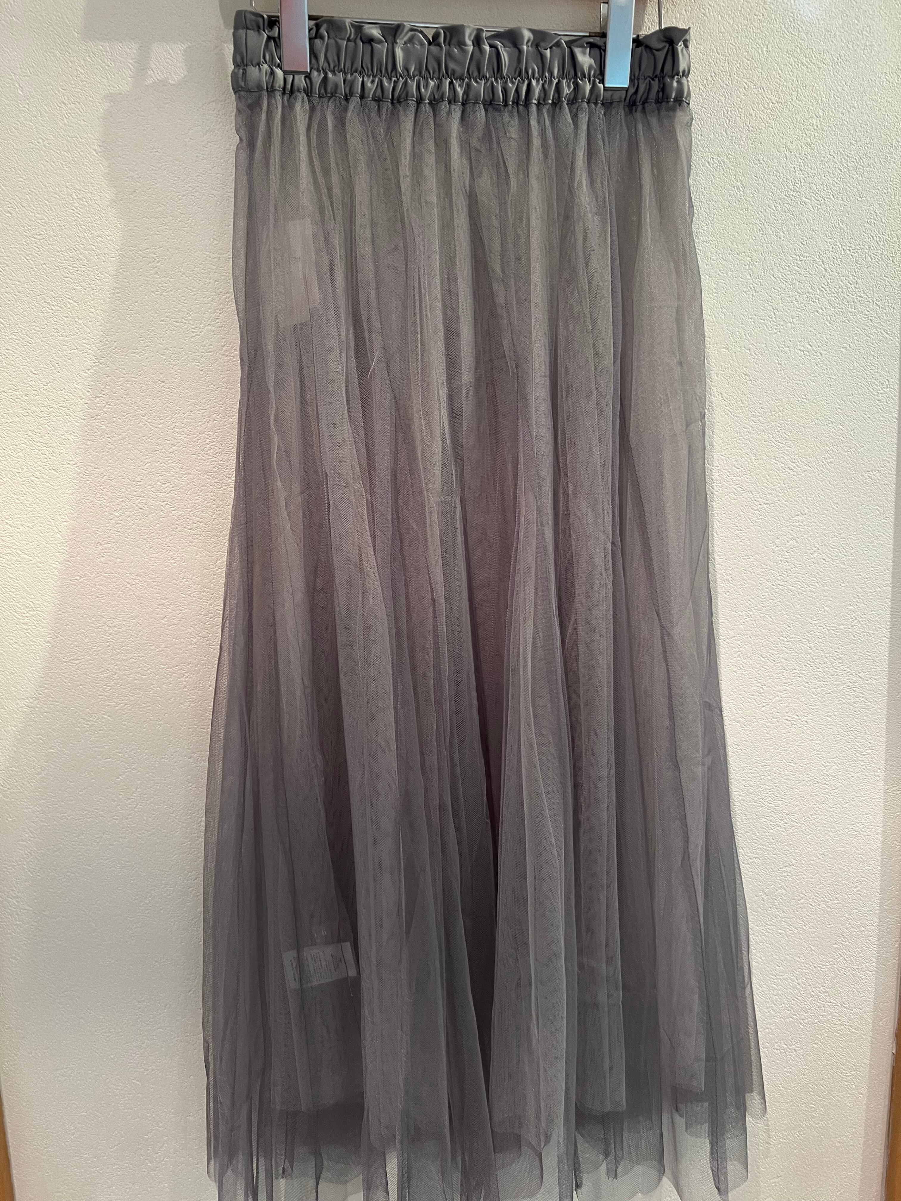 カラーの異なるチュール素材を使用し、1枚で2つの表情を楽しめるリバーシブルスカート。気分や雰囲気に合わせてコーディネートを楽しんでいただけます。