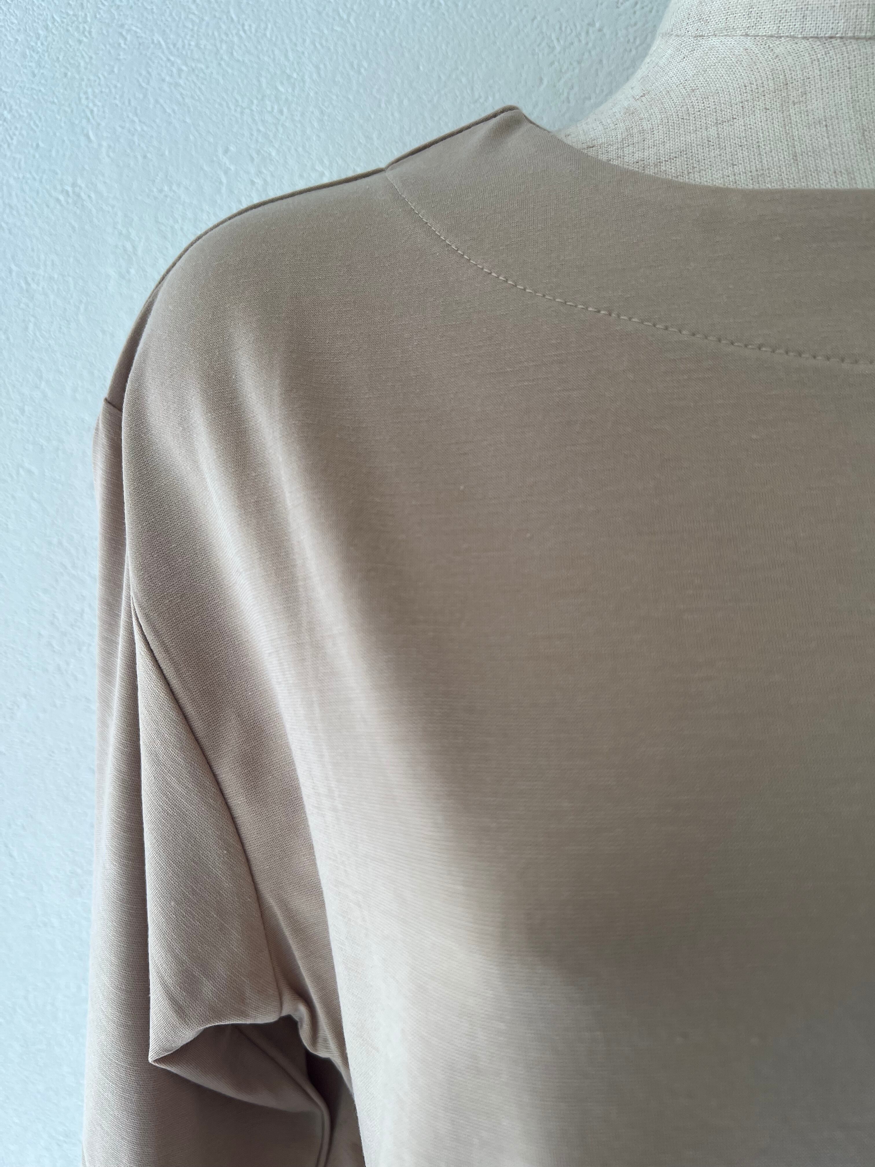 カジュアルになりずぎないようネックの開き加減や裾の始末など、キレイめデザインにこだわりました。