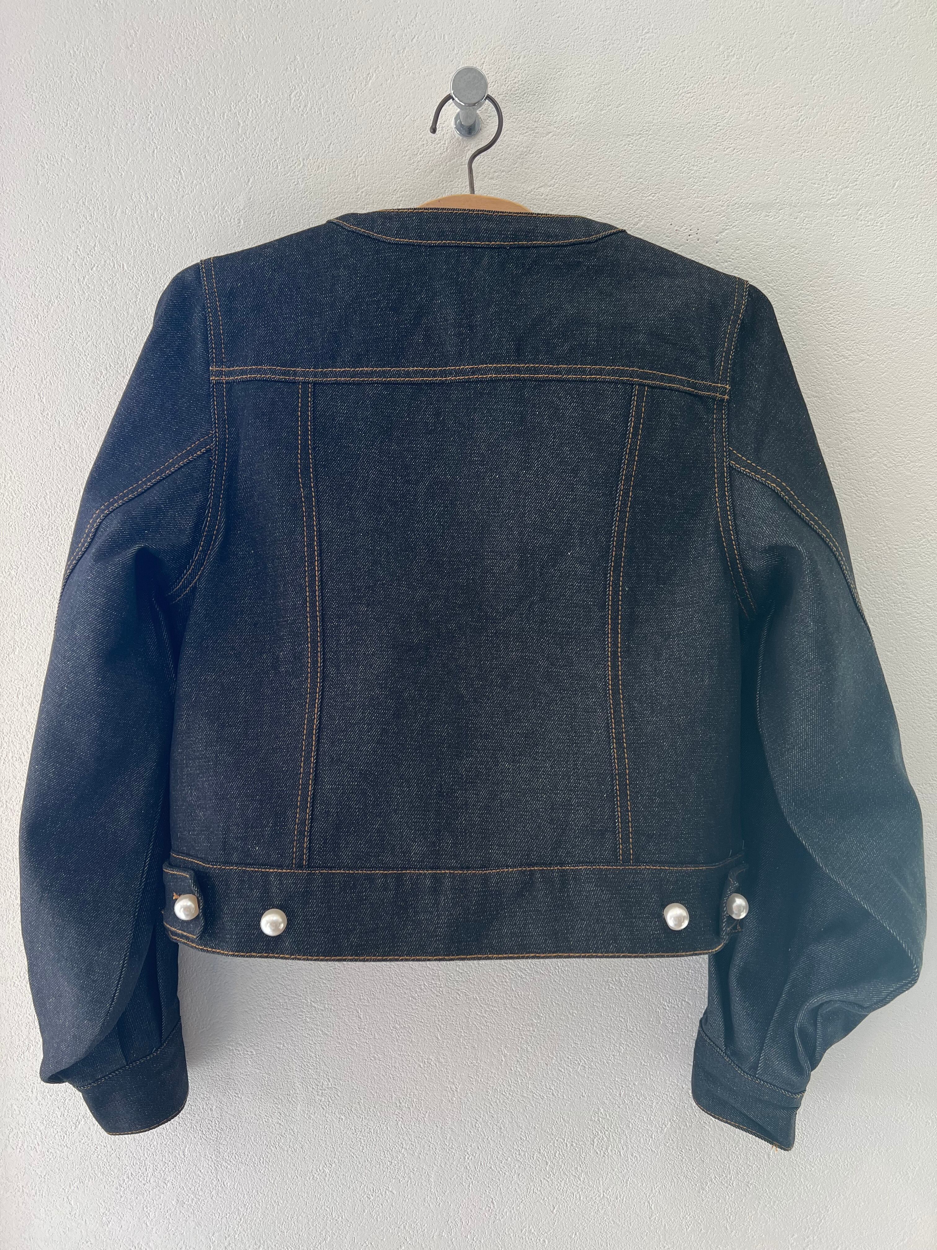 大粒のパールボタンとボリュームスリーブがポイントのデニムブルゾンが登場!デニム素材ながらもノーカラーとパールボタンが施してあることでカジュアル過ぎることなく上品な印象で着用いただけます。見た目よりもコンパクト過ぎないゆとり感と、短すぎず長すぎず丁度いい着丈になっています。