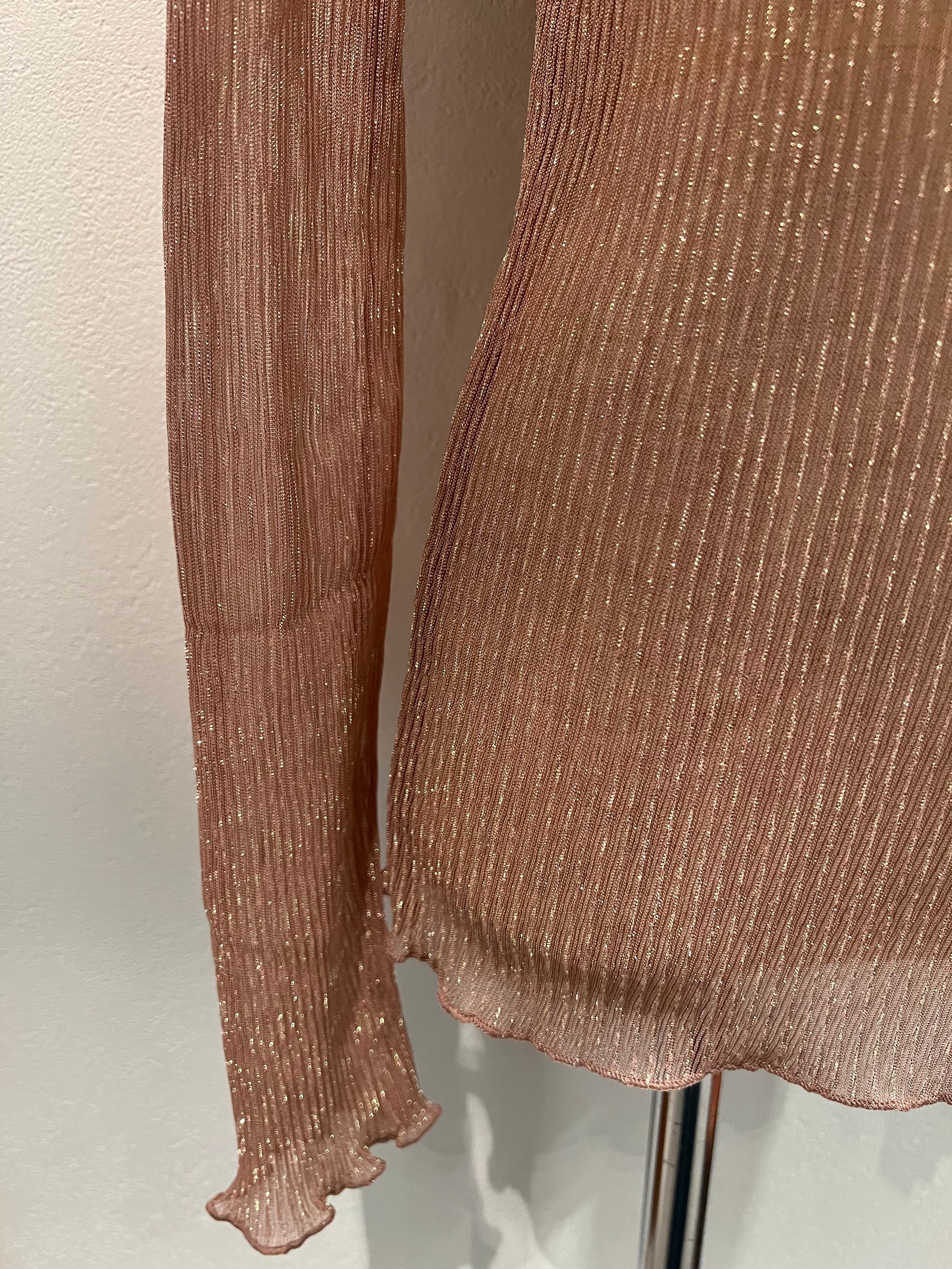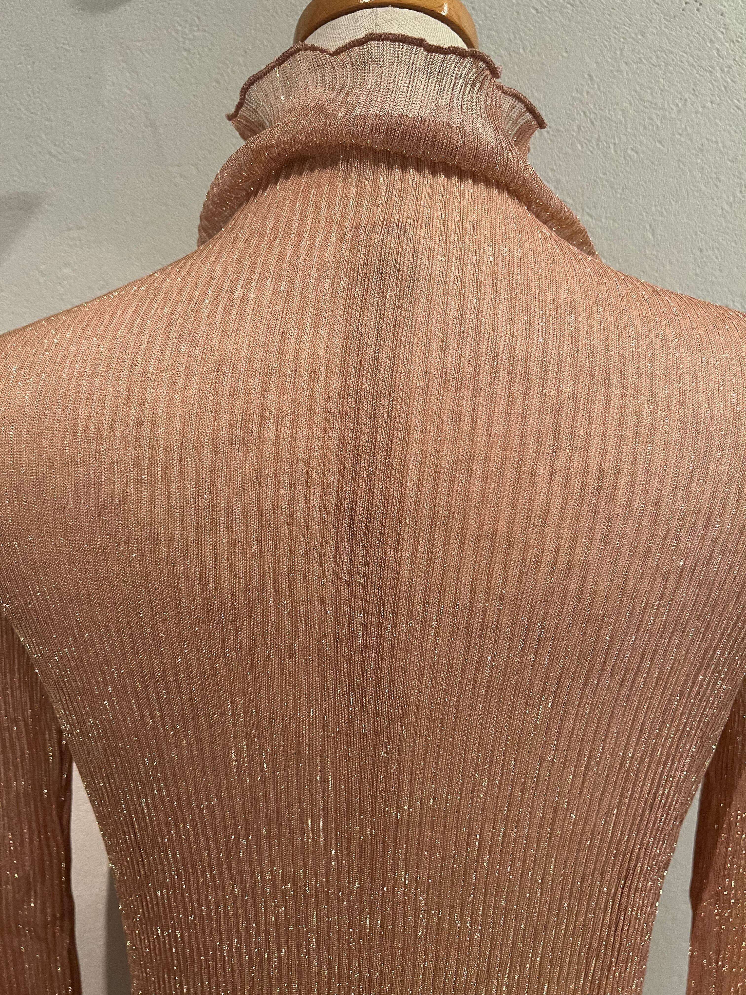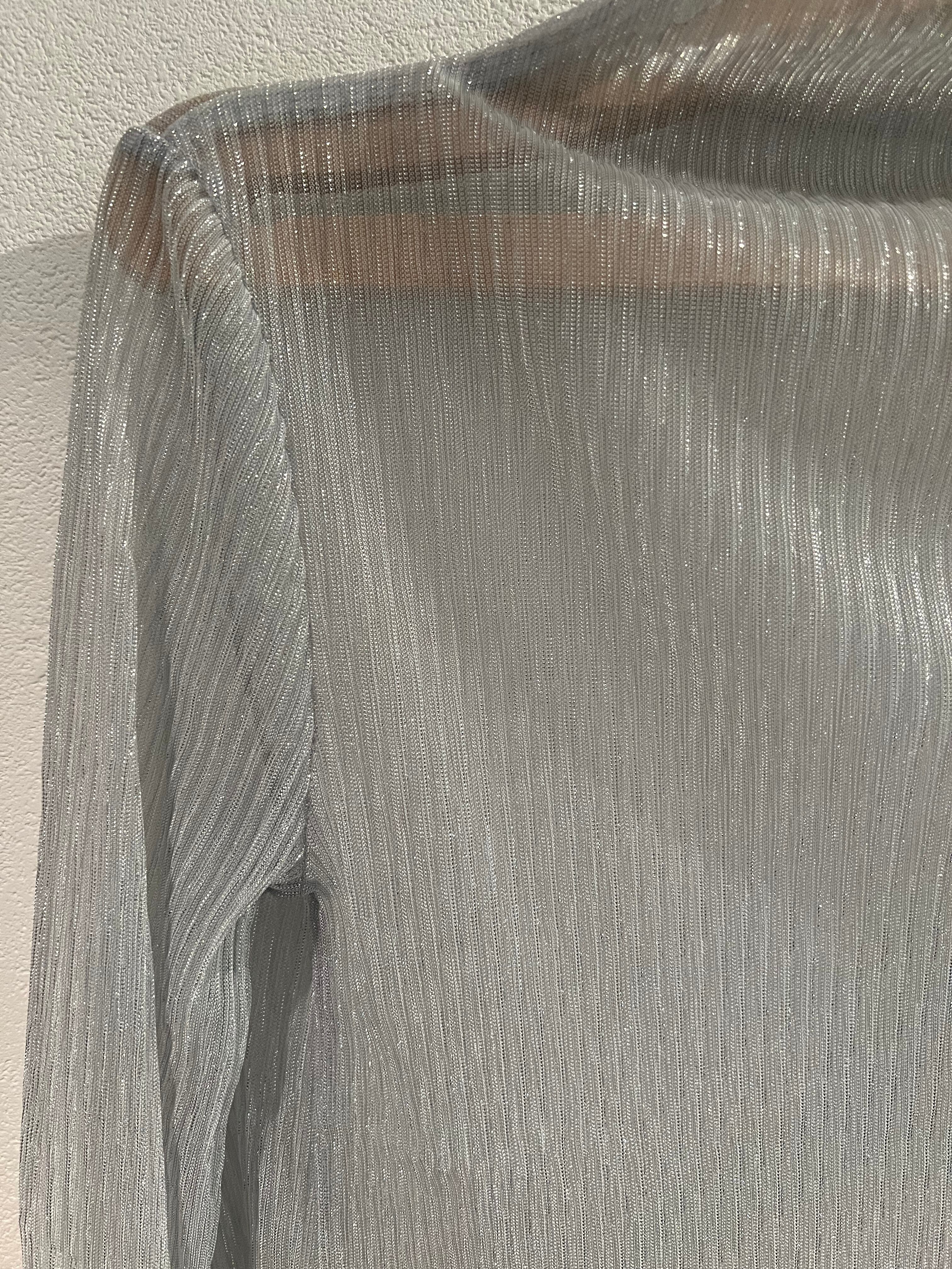 ボディラインに添いすぎないサイズ感が嬉しい、1枚着でもレイヤードでもヘビロテの着回しが期待できるシアートップス。贅沢なラメで秋冬の着こなしに華やかなアクセントをつけ、極細のプリーツが華奢見えを叶えます。メロウ加工の始末が柔らかく優しい印象を演出し、ハイネックで上品さをプラス。気分に合わせて選べるフェミニンなカラー展開が気分を上げてくれます。コーデに加えるだけで旬顔になれる1枚です。
