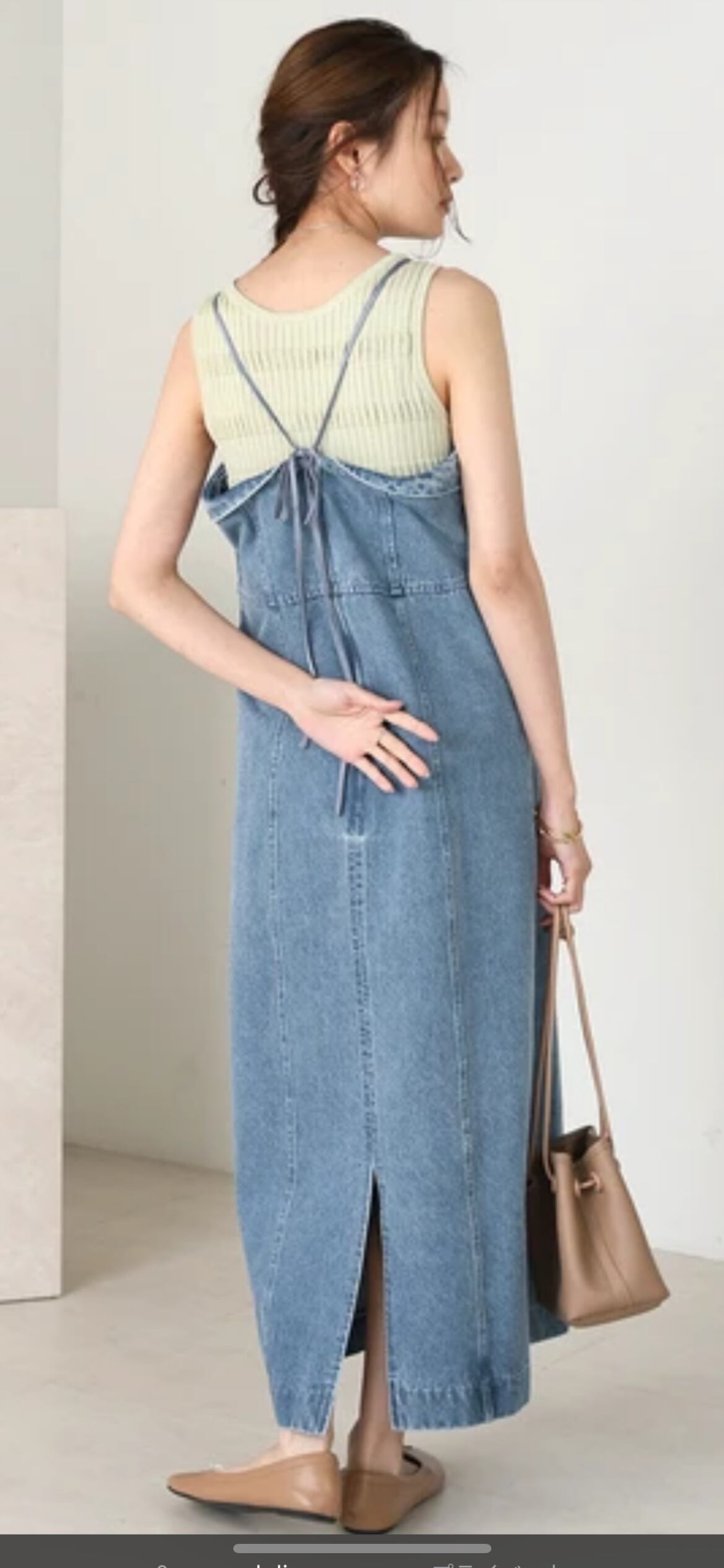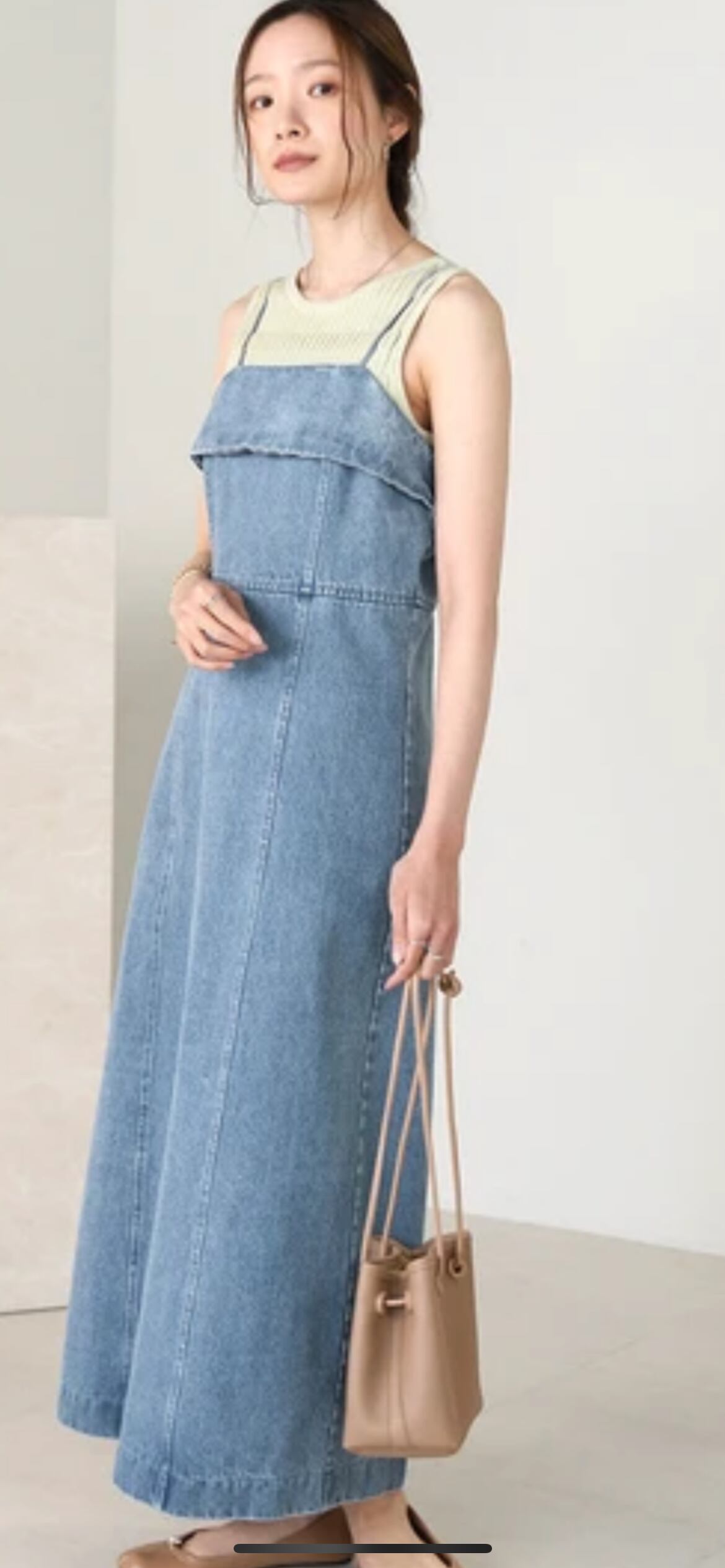 カジュアルになりがちなデニムワンピースを、エレガントなIラインと胸元のラッフルデザインで大人フェミニンなムードにアップデートしました。華奢見えも期待できるサテン地の紐リボンは背中側で結んでいただき、着丈の調整もOK。360度どこから見ても抜かりないデザインです。すっきりめなシルエットですが、後ろにスリットがあるので歩きやすさも◎。ハイウエスト切替で脚長効果もあり、セットアップのデニムジャケットと合わせると よりスタイルアップした着こなしを楽しめます。
