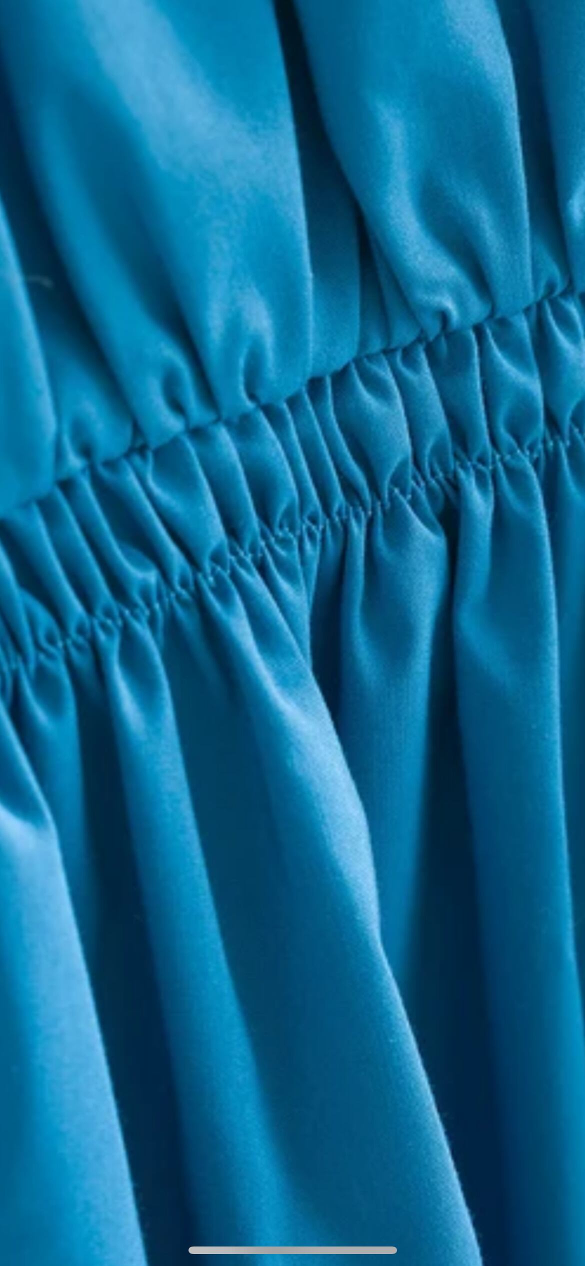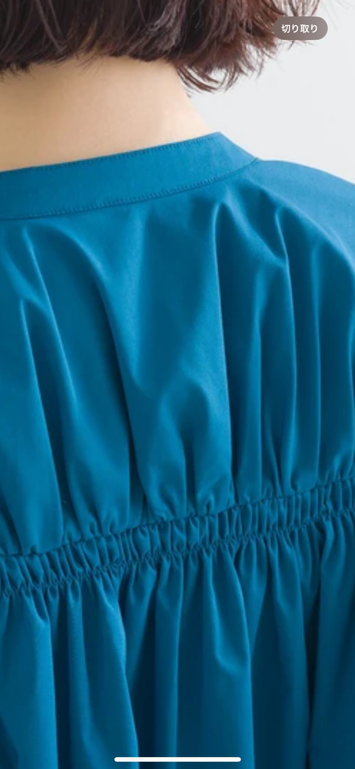 バックスタイルのギャザーがバックギャザーが引き立つ、程良くハリのある生地感で綺麗めな印象に。