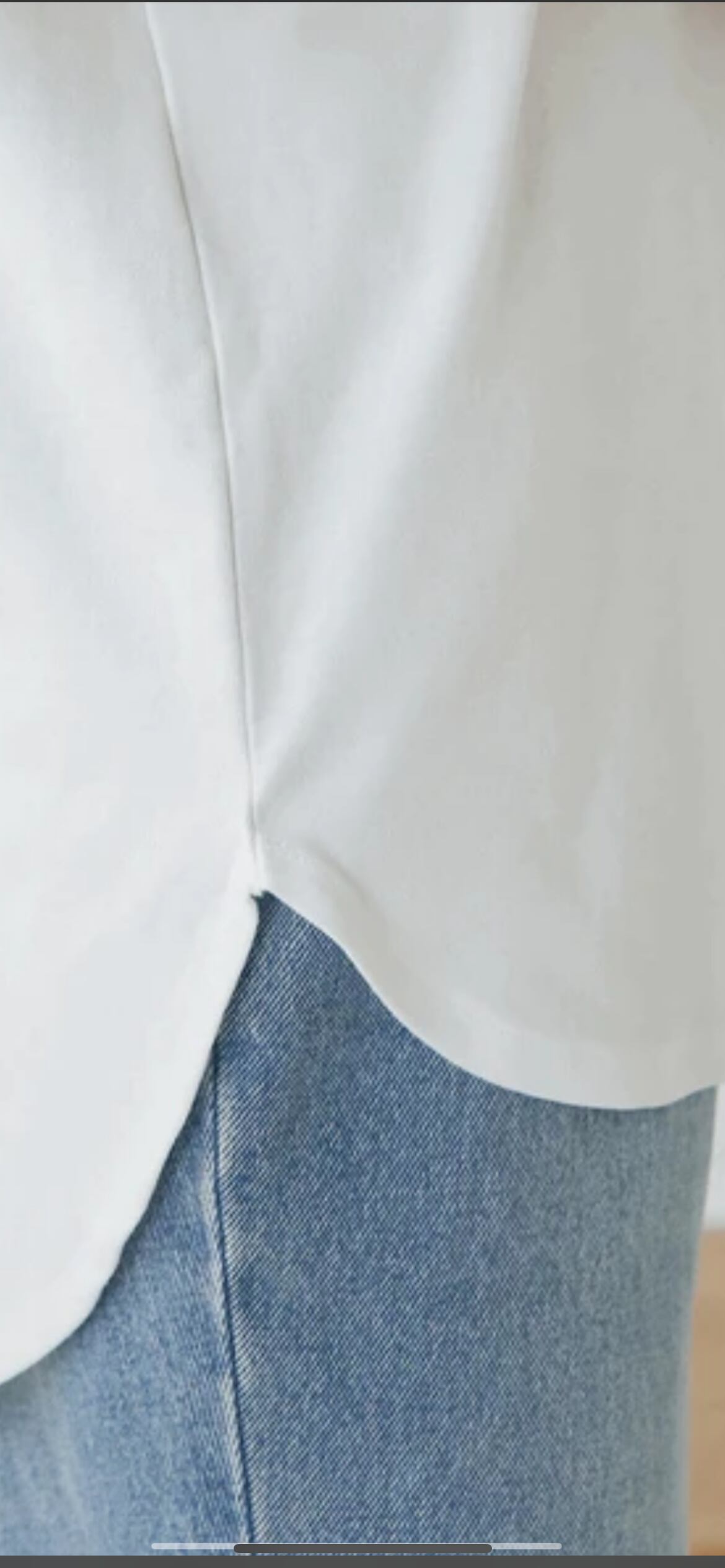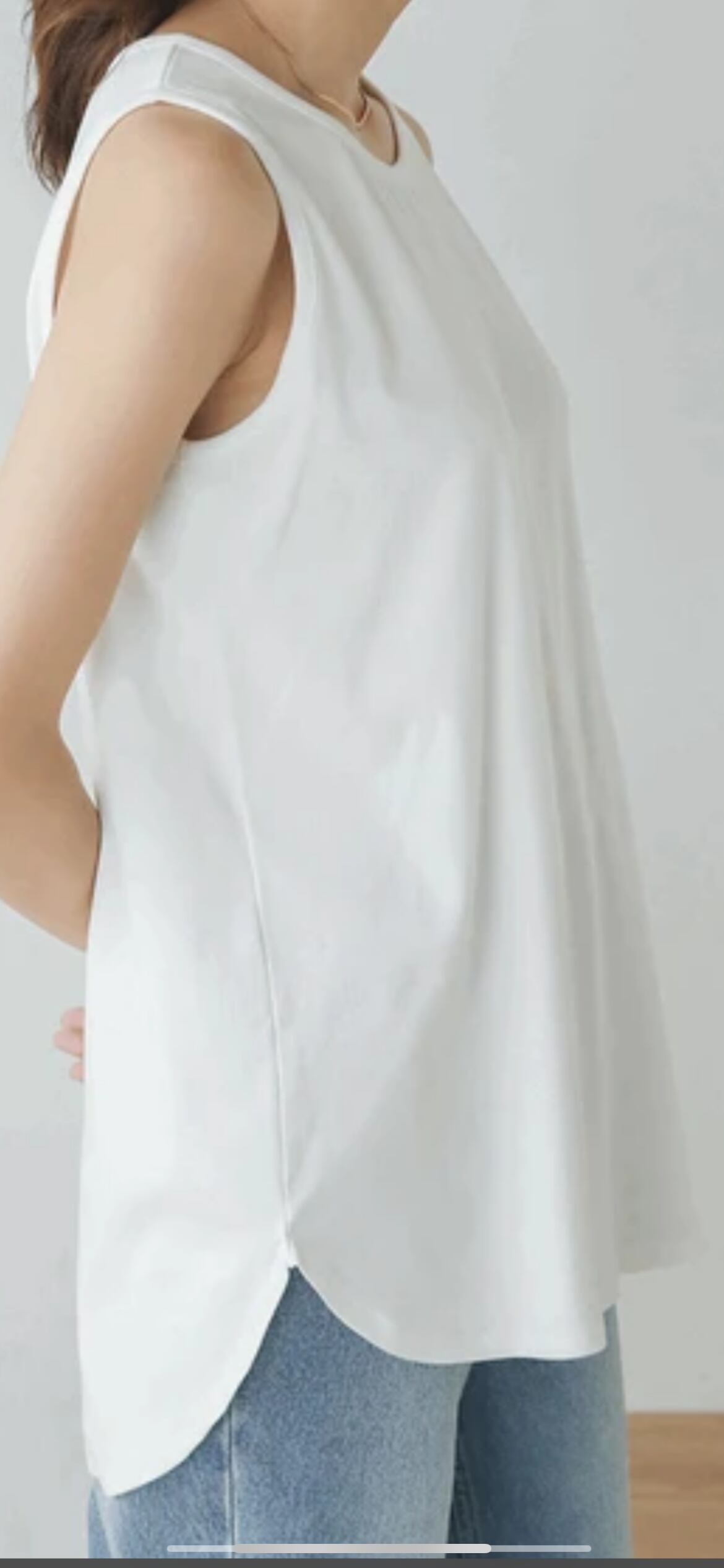 バックロングの長めの丈に裾のラウンドカットでスッキリ見え、重ね着にもマッチ。