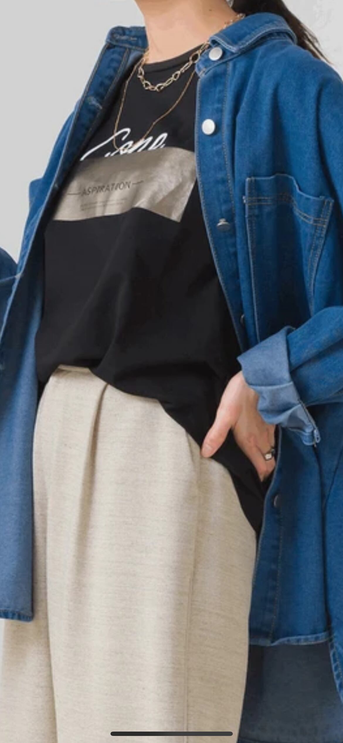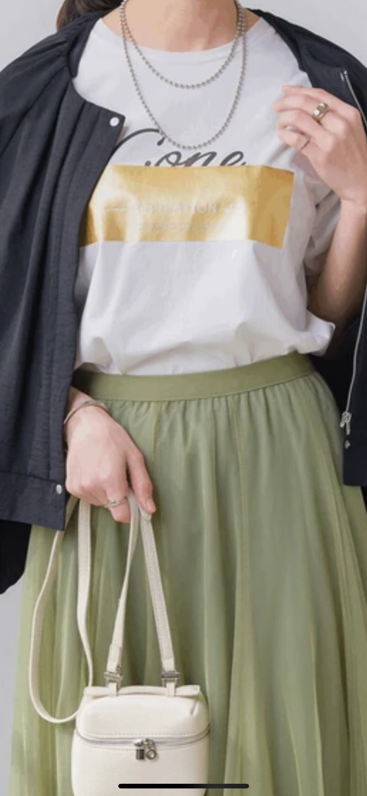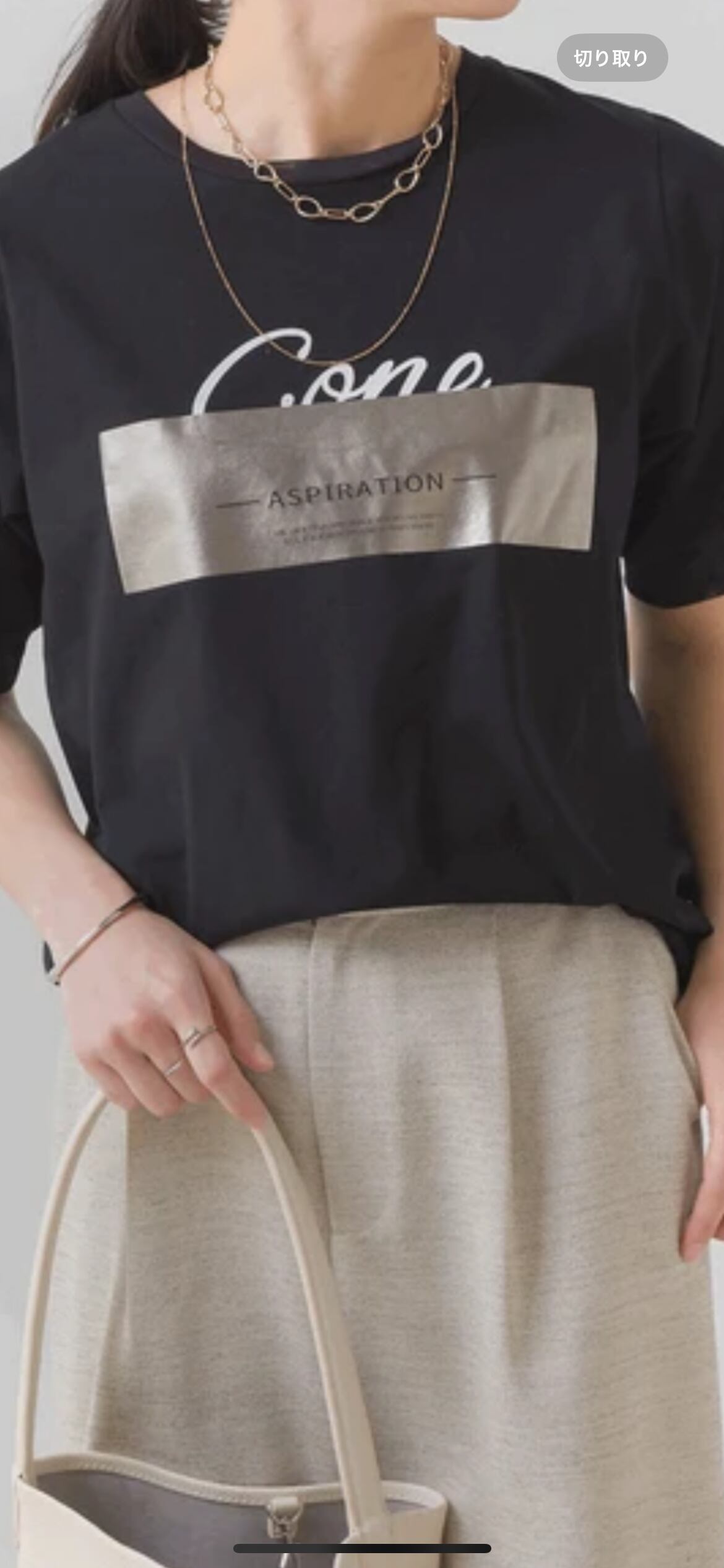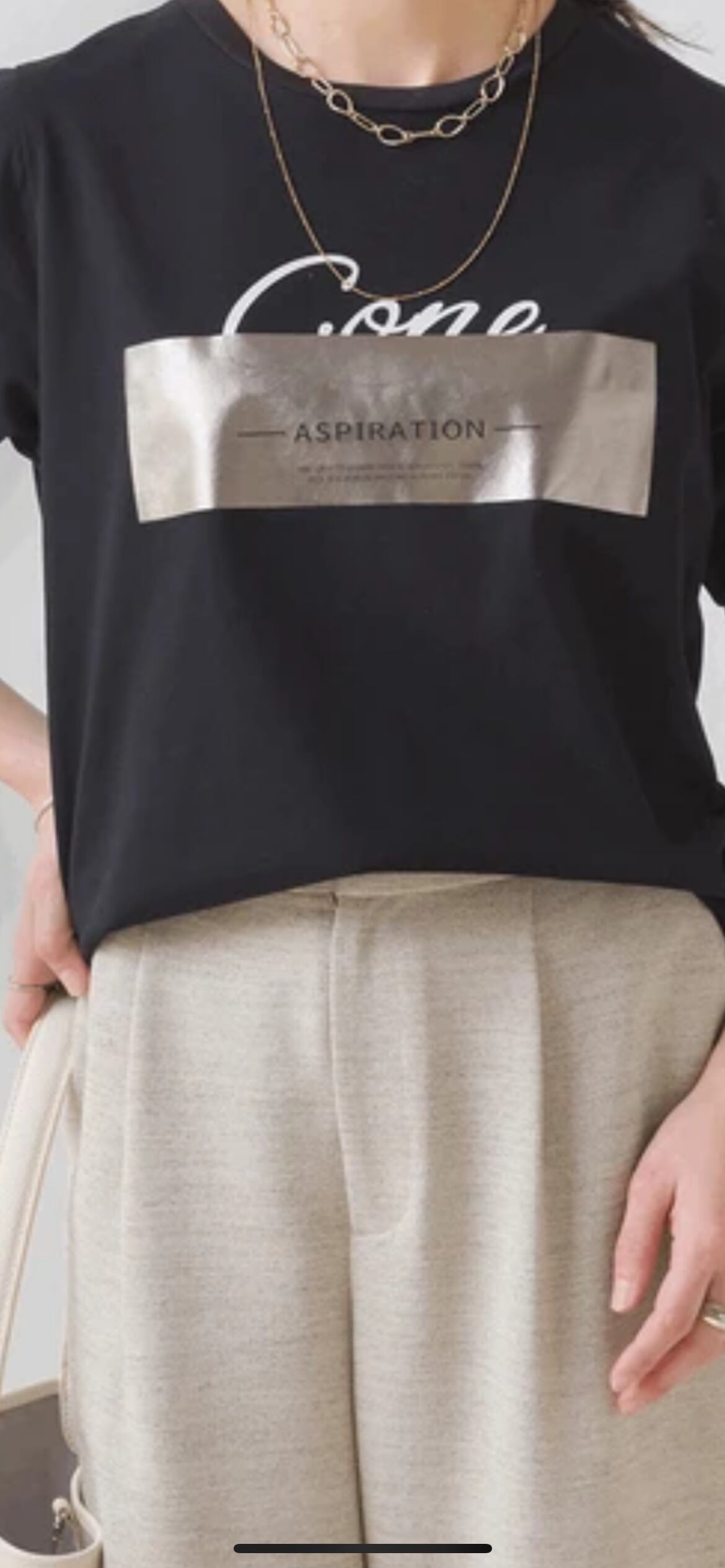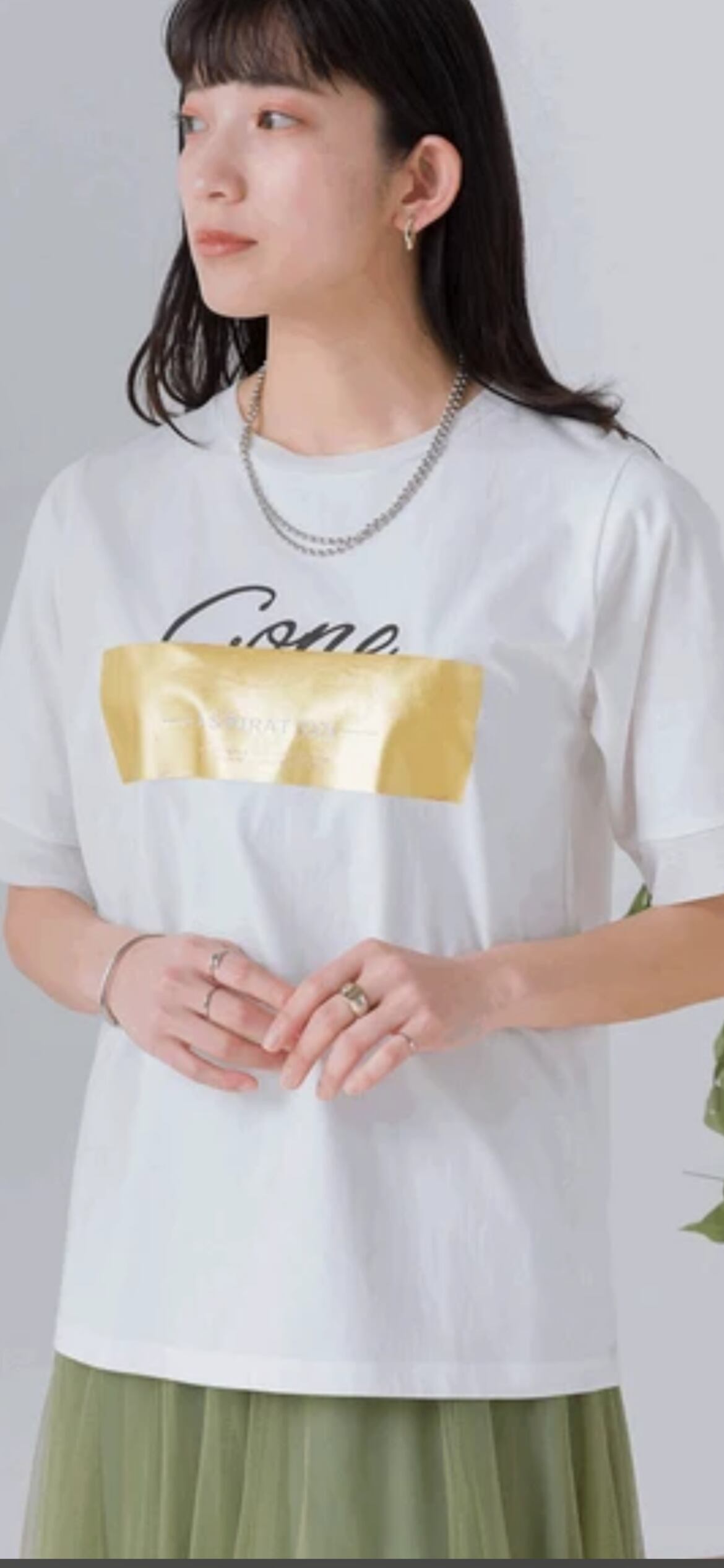 春に煌めく箔プリントが施されたデザインTシャツです。