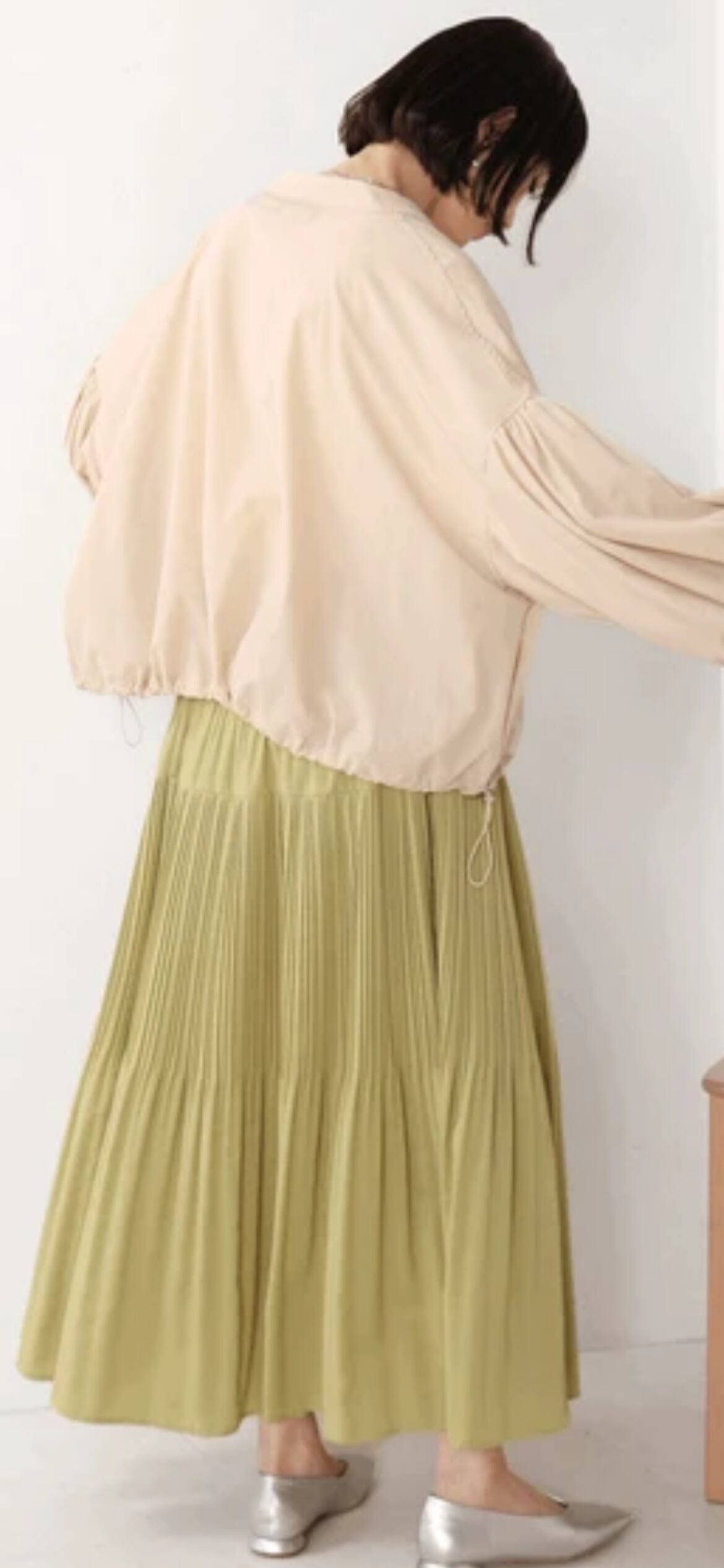 袖バルーンがポイントで女性らしさもありながら体のラインを拾いにくく、体型カバーも叶います。
