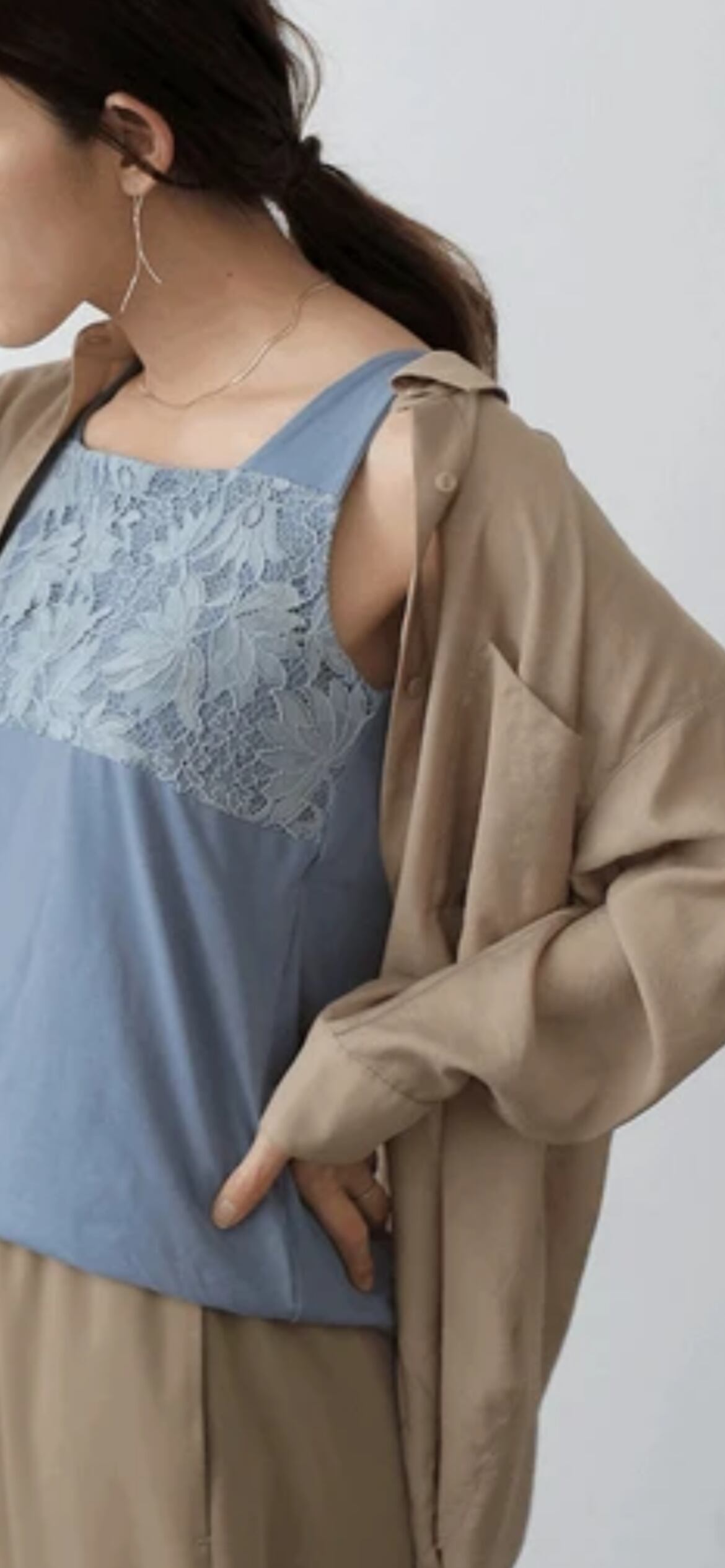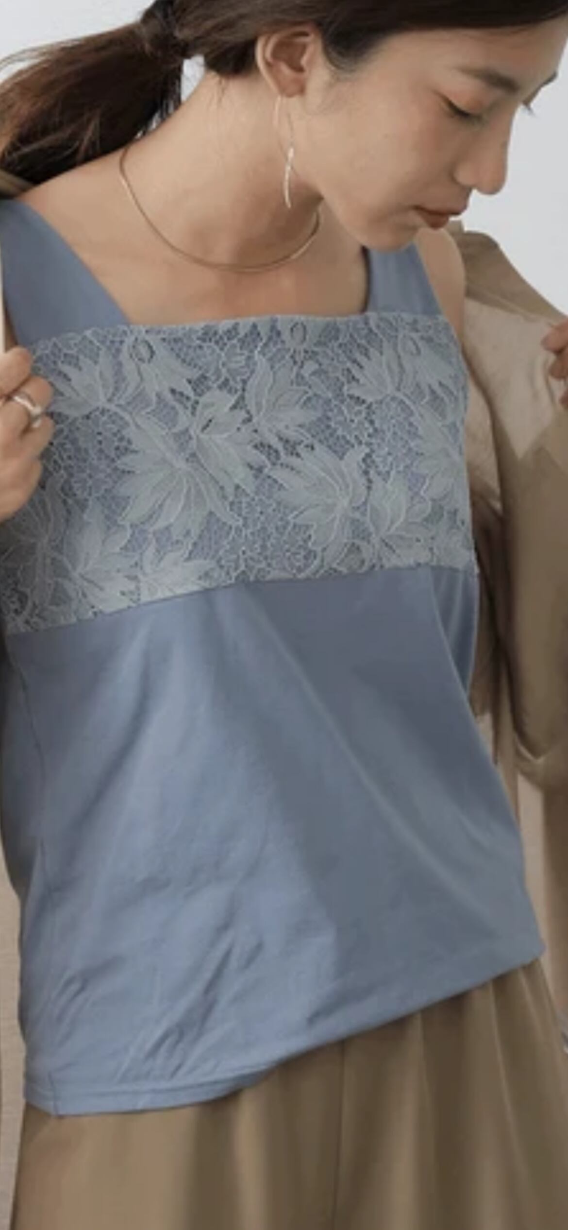 レース側はスクエアネックなので胸元を優しくカバーし、コーディネートもしやすいです。