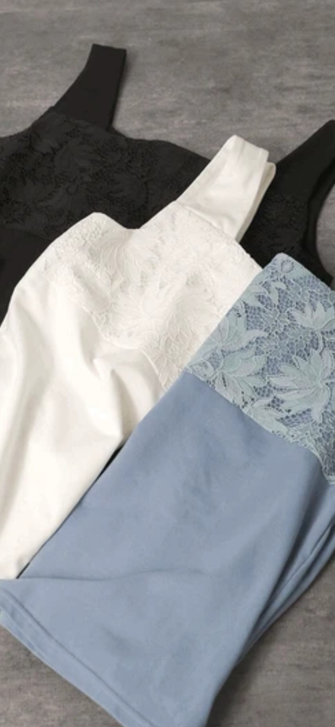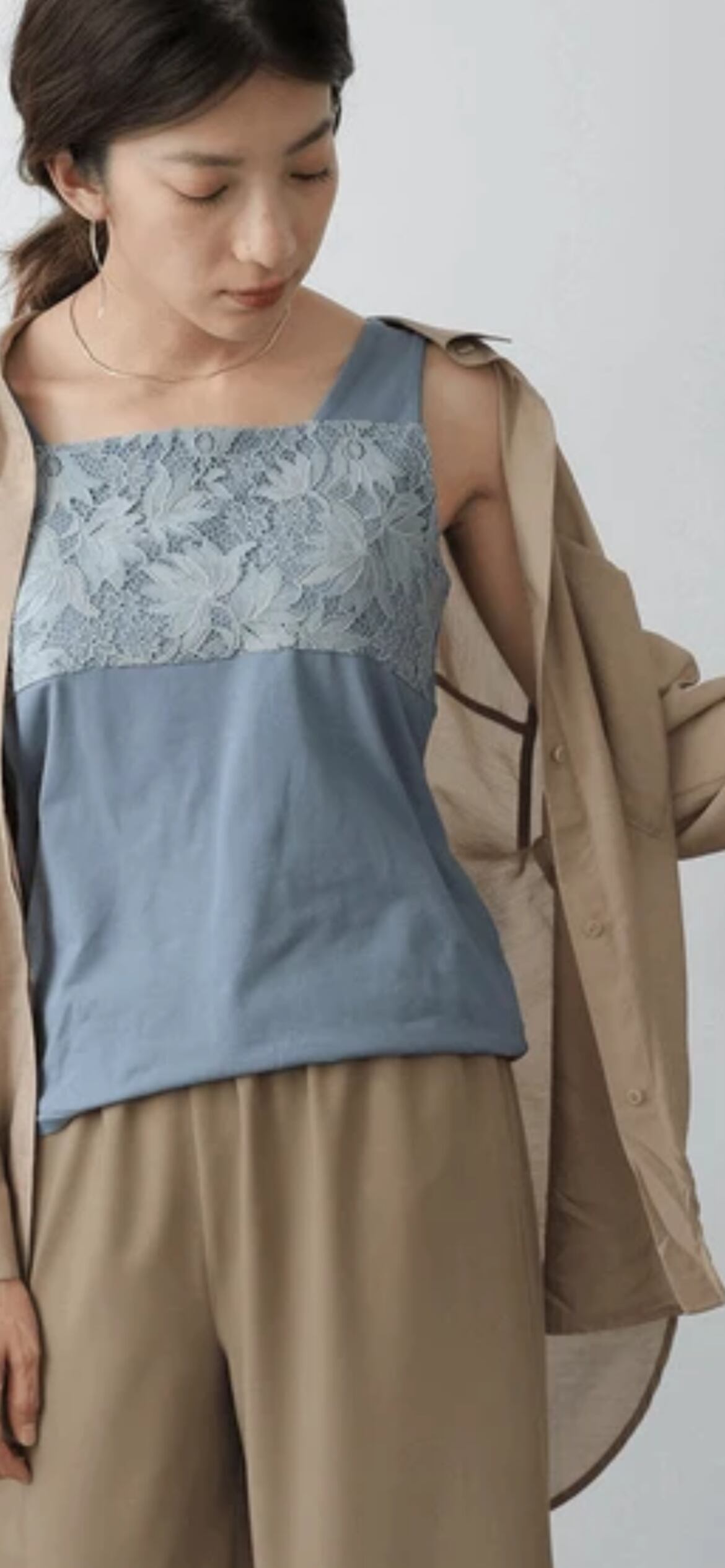 エレガントになりすぎない、レースの柄にもこだわったタンクトップ。