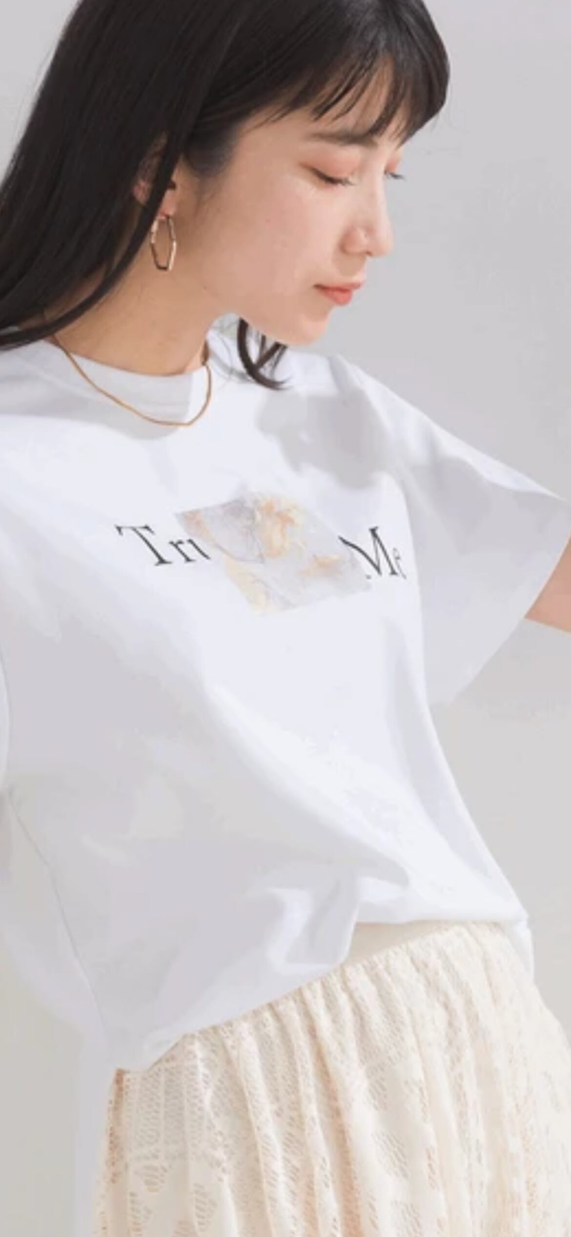 印象的なプリントですが、シンプルなアウトラインなので幅広いコーディネートになじみやすい型です。