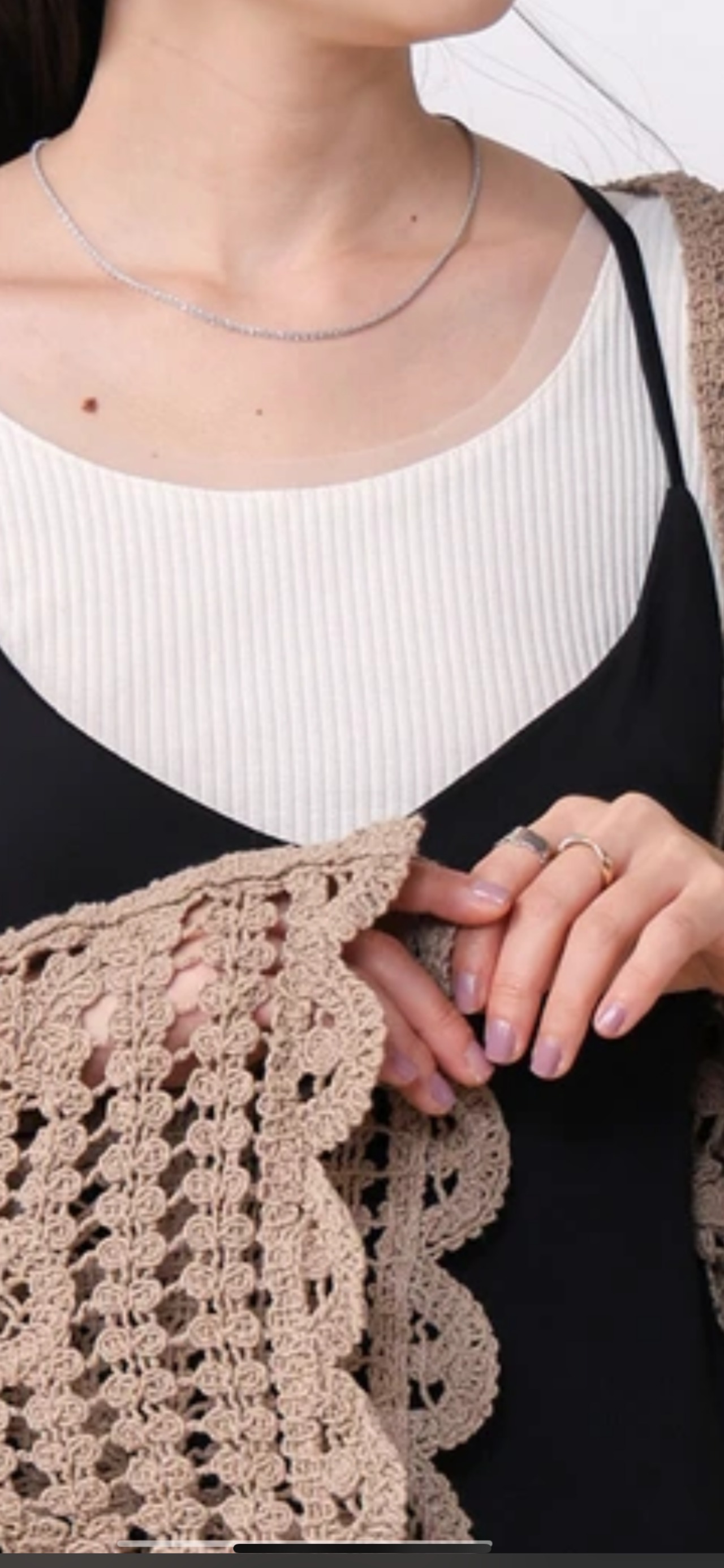 計算された衿ぐりで、どんなアイテムのインナーに着てもチュール部分が見えやすいデザインです。もちろん1枚着でシアーブルゾンやクロシェカーディガンを羽織っても、大人ヘルシーなコーディネートが楽しめます。