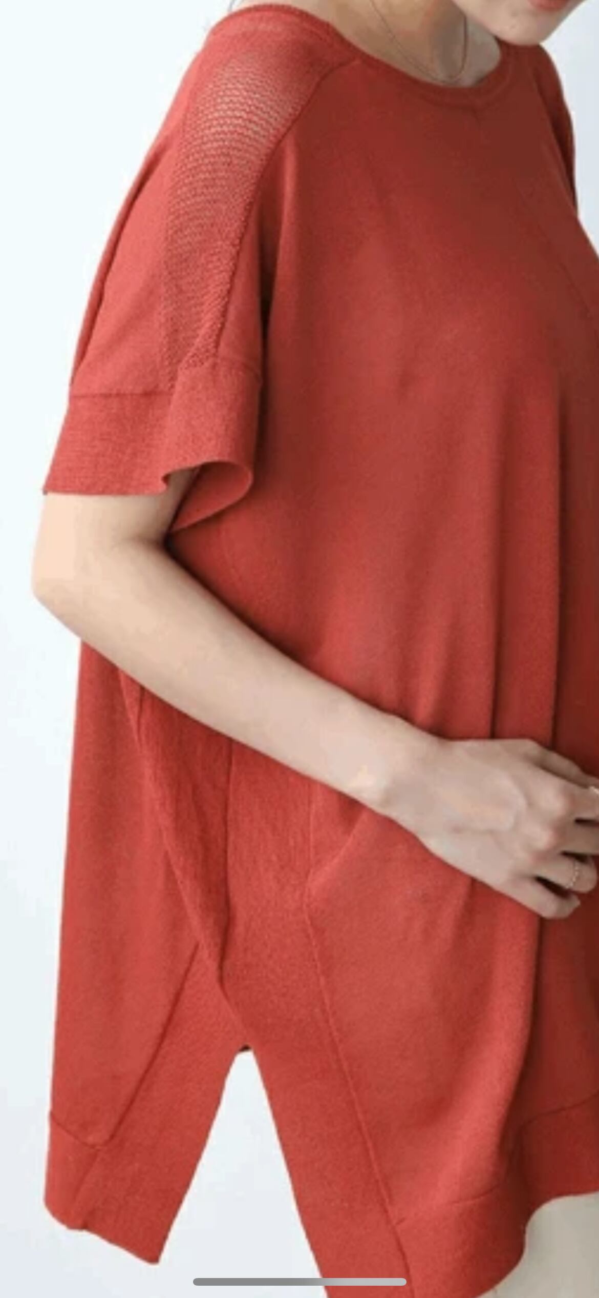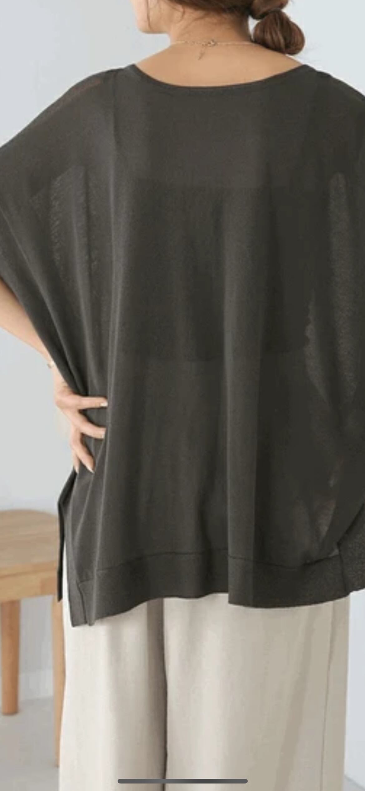リネンの様な風合いのポンチョ風プルオーバー。軽くて涼しい機能的な一枚。
