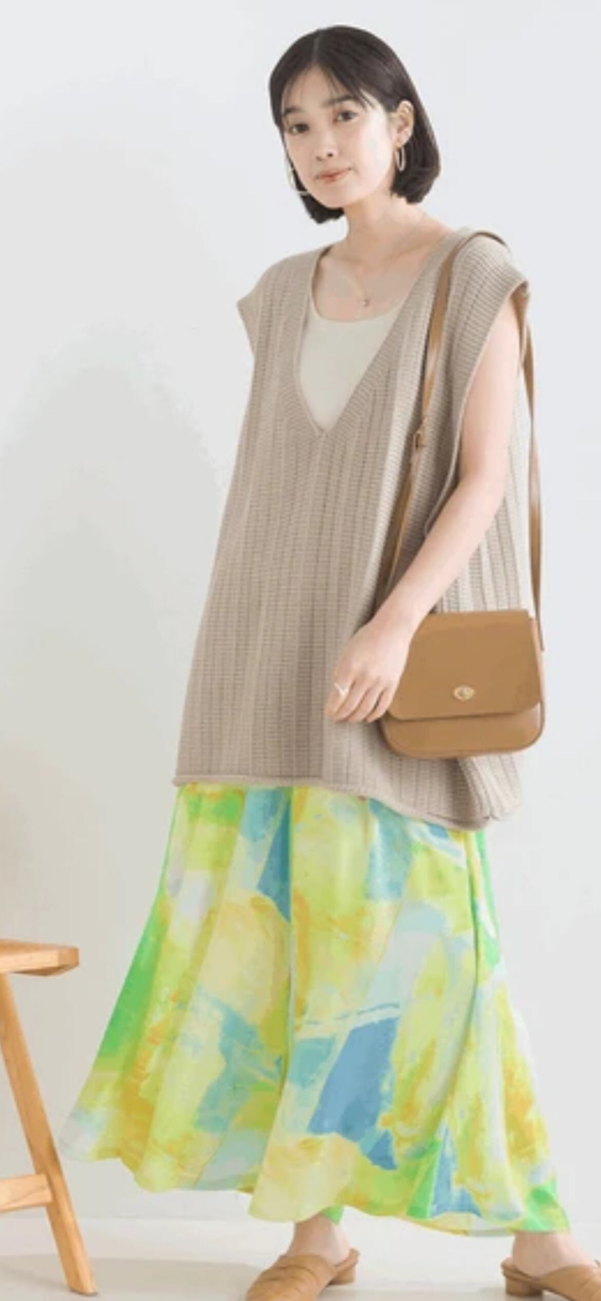 ぼかしたニュアンスの柄がこなれた印象を与える夏にぴったりの一枚。