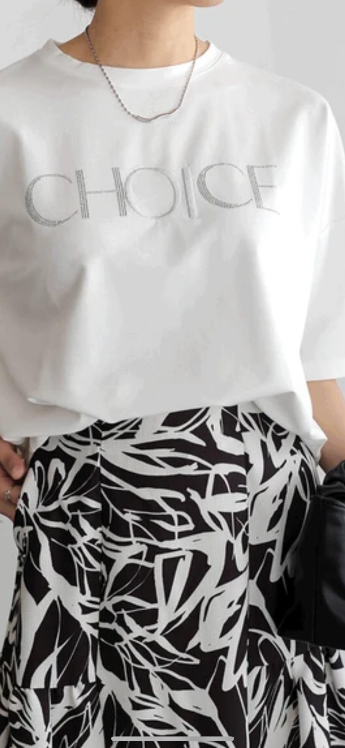 ジャケットやカーディガンを羽織っても、きらめくアクセントロゴがインナーとしても大活躍してくれるこの夏取り入れたい一枚です。