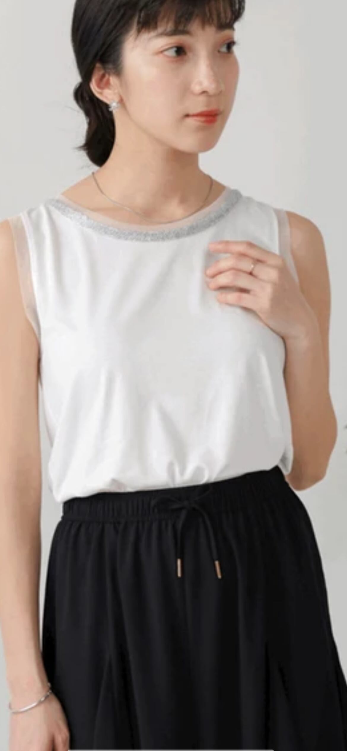 カーディガンのインナーや、デコルテまわりが開いたワンピースやブラウスのインナーに入れて、アビガイル部分をチラ見せするのにオススメです。