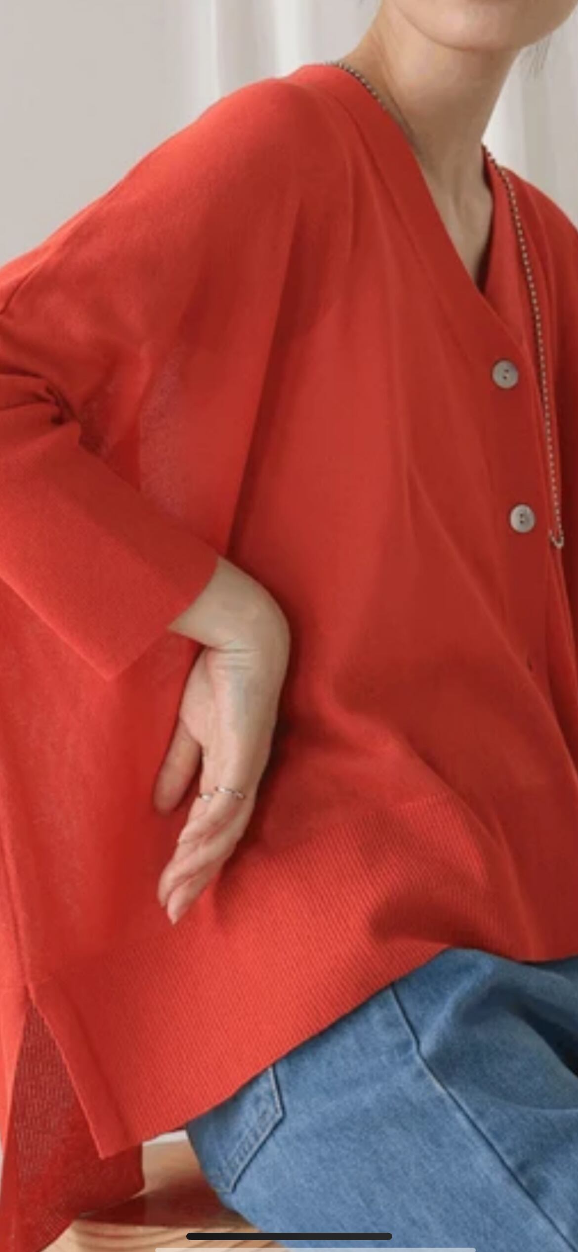 たっぷりの分量と、裾のスリットが風通しよくサラリと着こなせます。