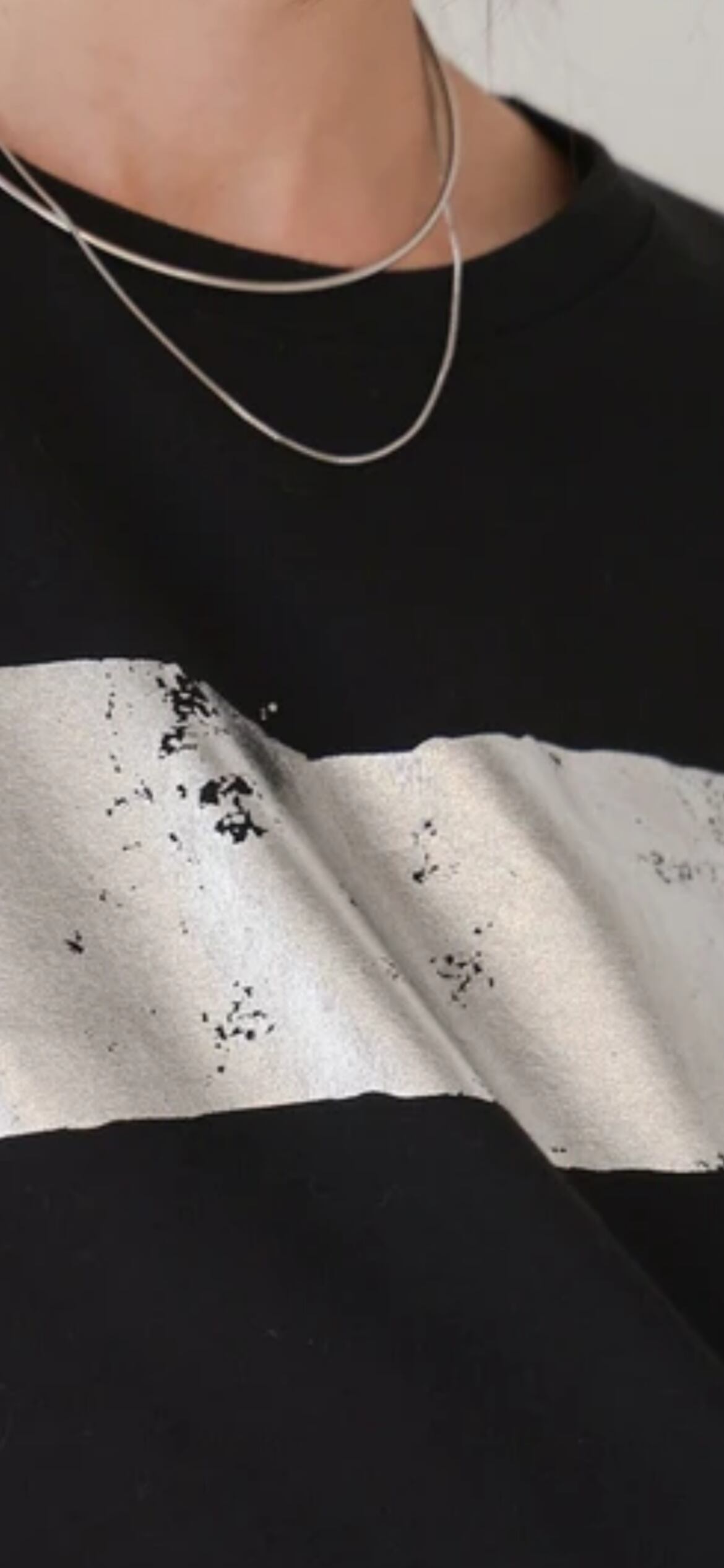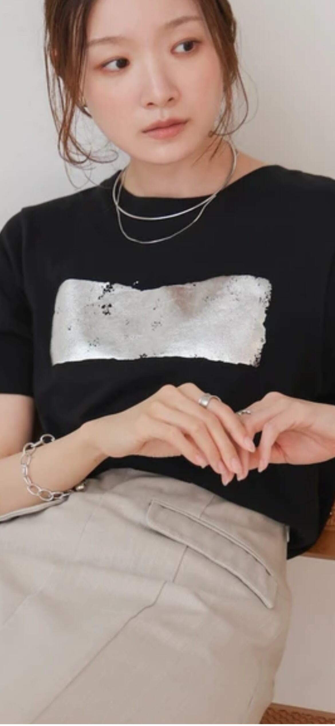 暑い夏の着回しに一役買う箔プリントが施された半袖Tシャツが登場です。エッジの効いたシルバーの箔プリントで、さりげないヴィンテージ感のある風合いとなっております。