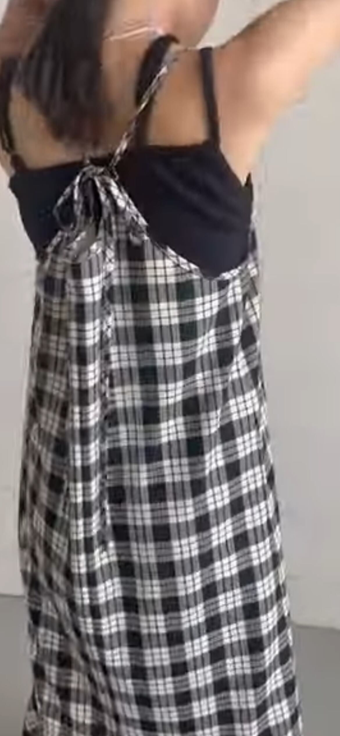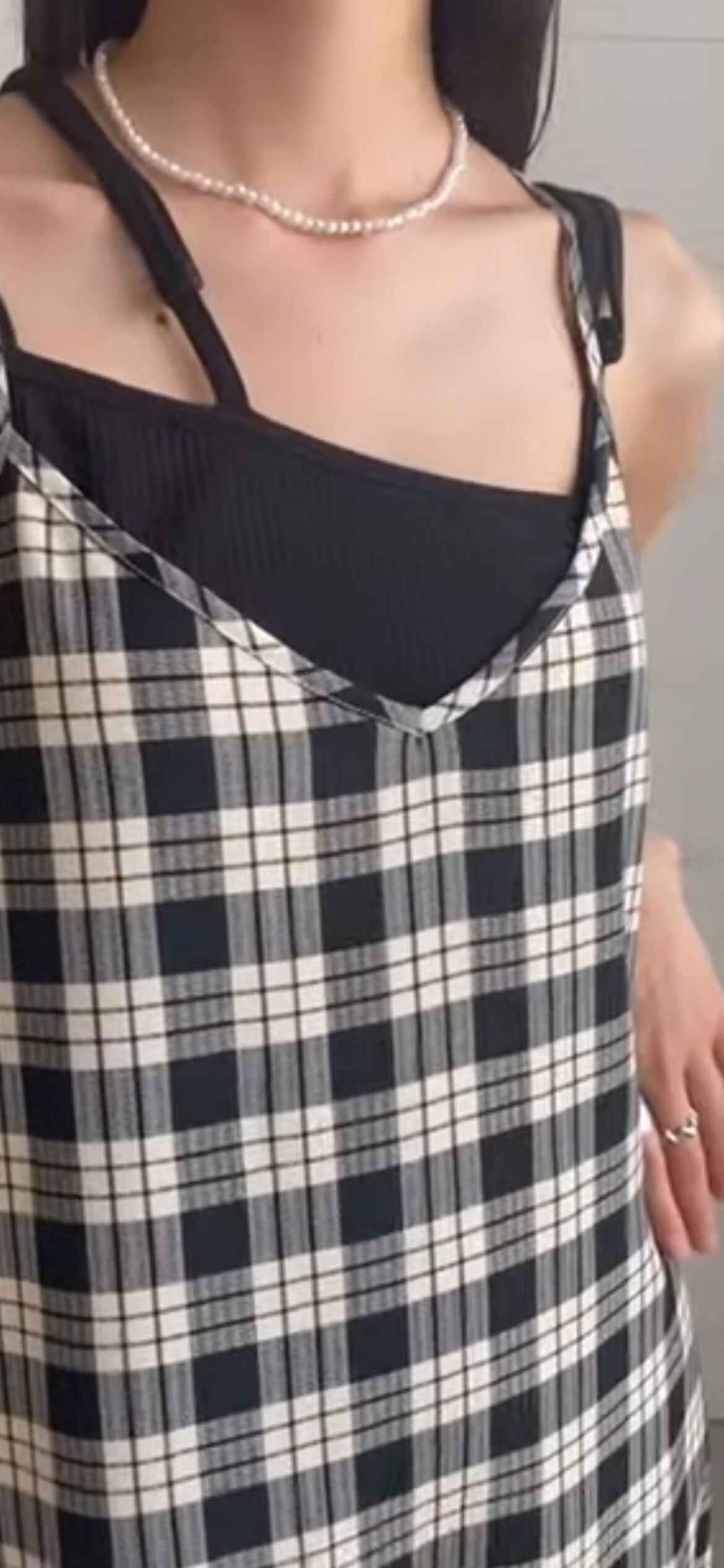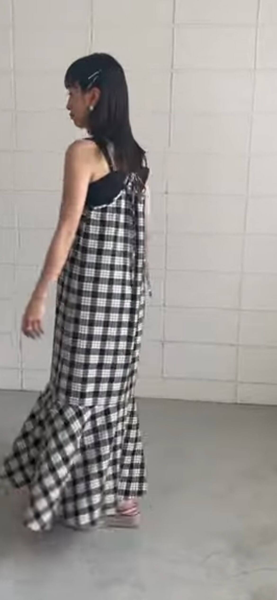 大胆なチェック柄が魅力的なキャミワンピース。色によってチェックの柄が違います。夏らしい着るだけで気分が上がるカラー使いもポイントです。