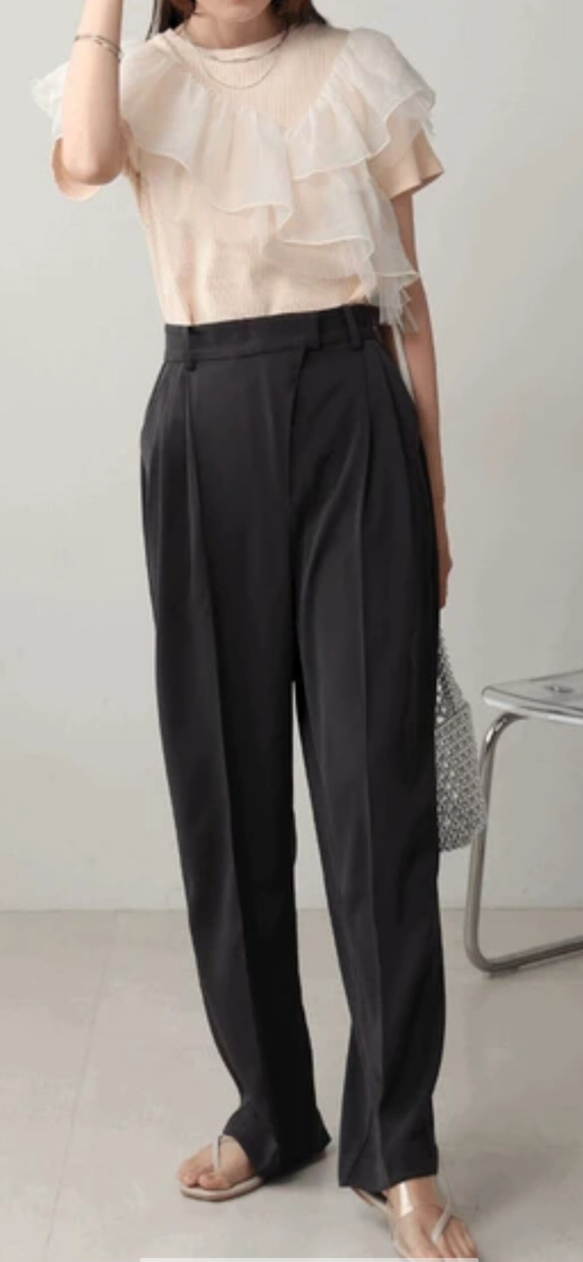 キレイめブラウスやトップスにもオーバーサイズニットにも相性抜群◎トップス次第でイメージが変えられます。シンプルに無地TシャツやプリントTシャツ、足元はスニーカー合わせで大人カジュアルにも。