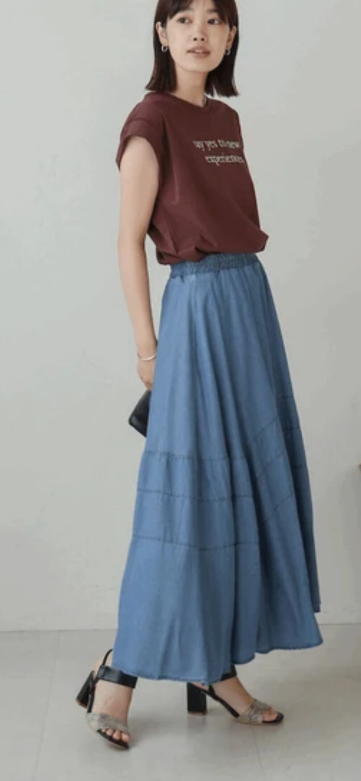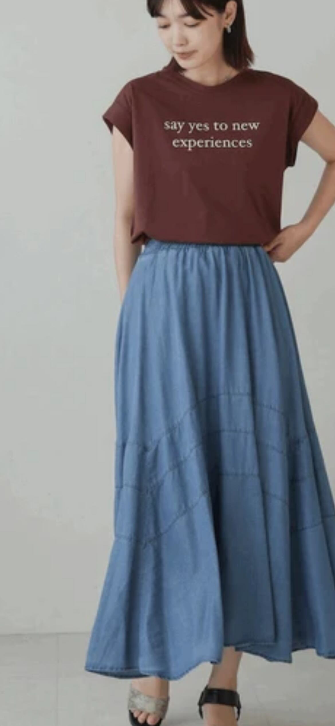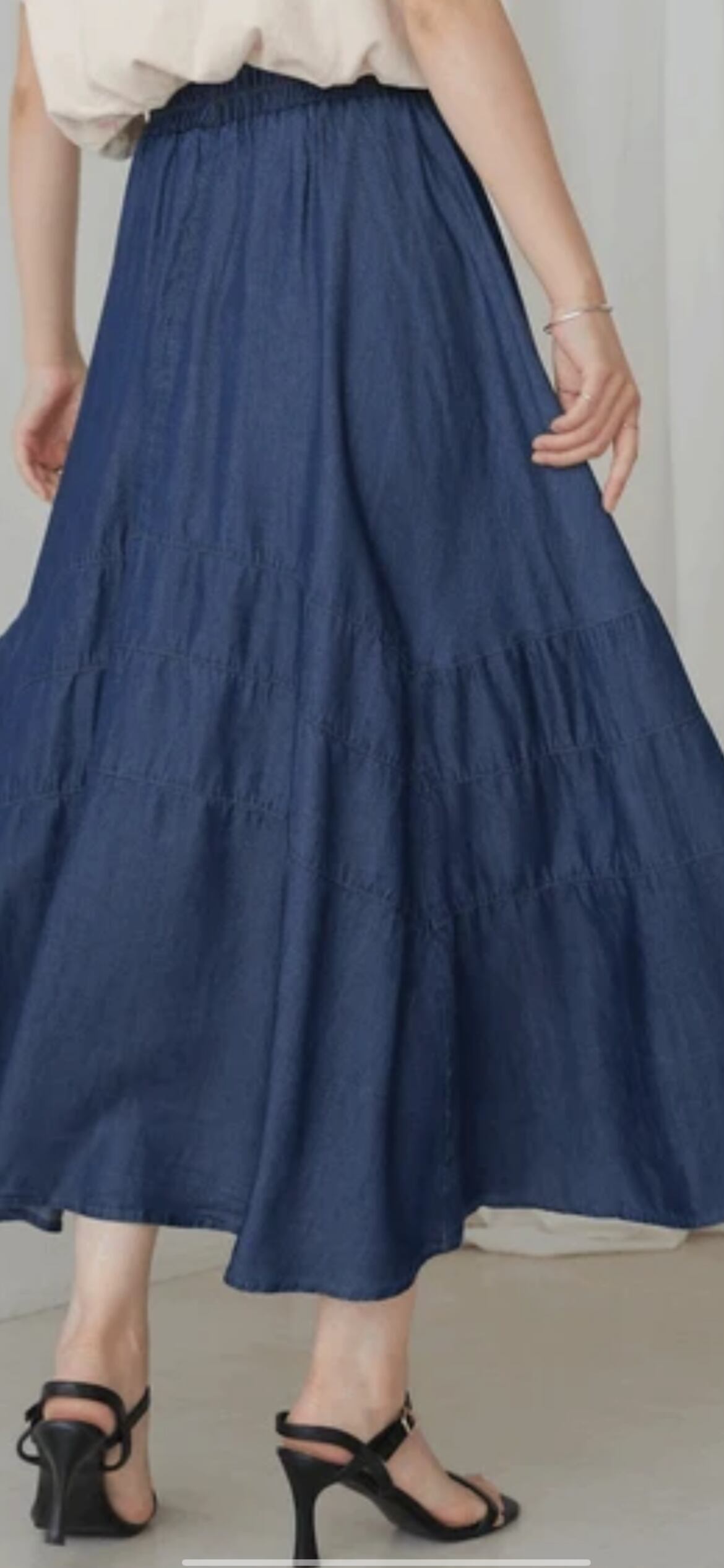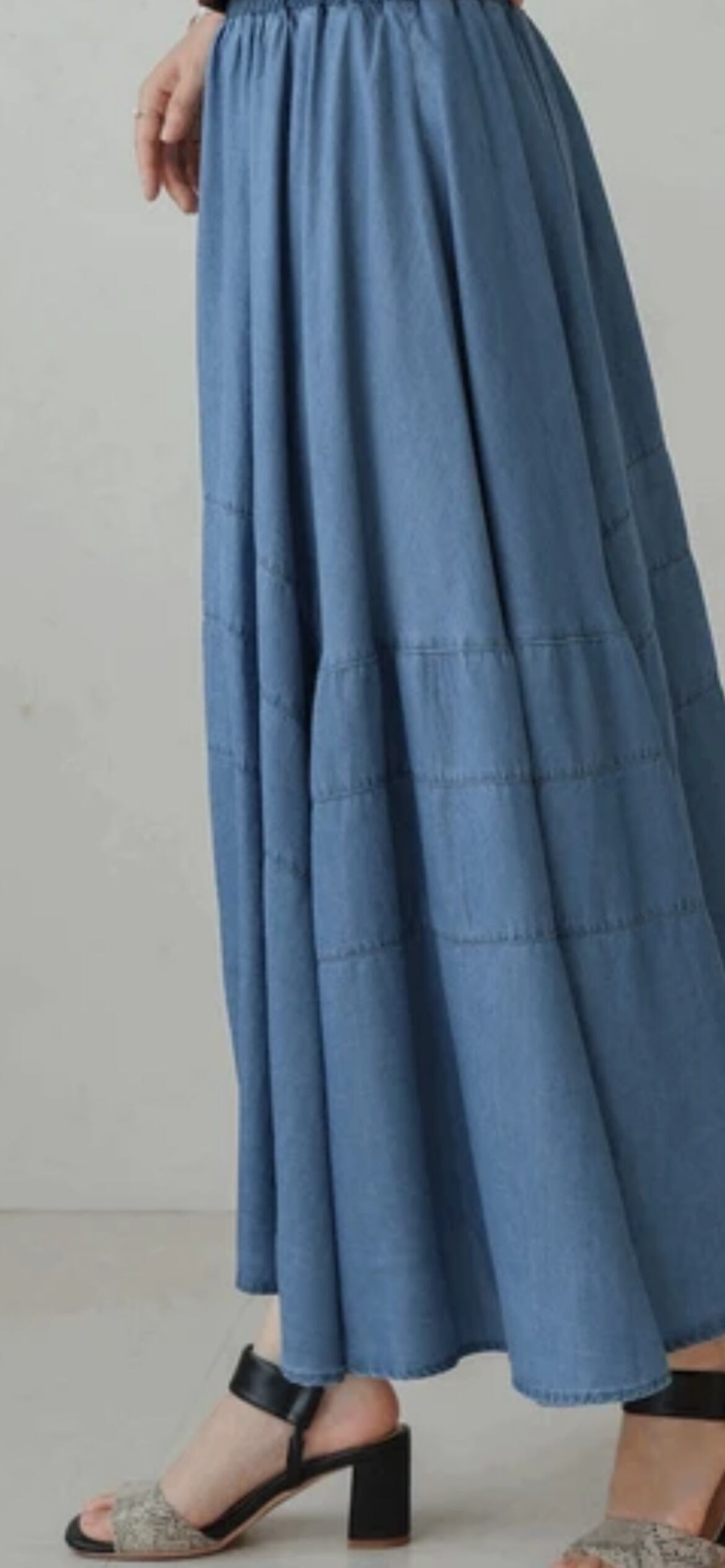デニム切替デニムフレアスカート
