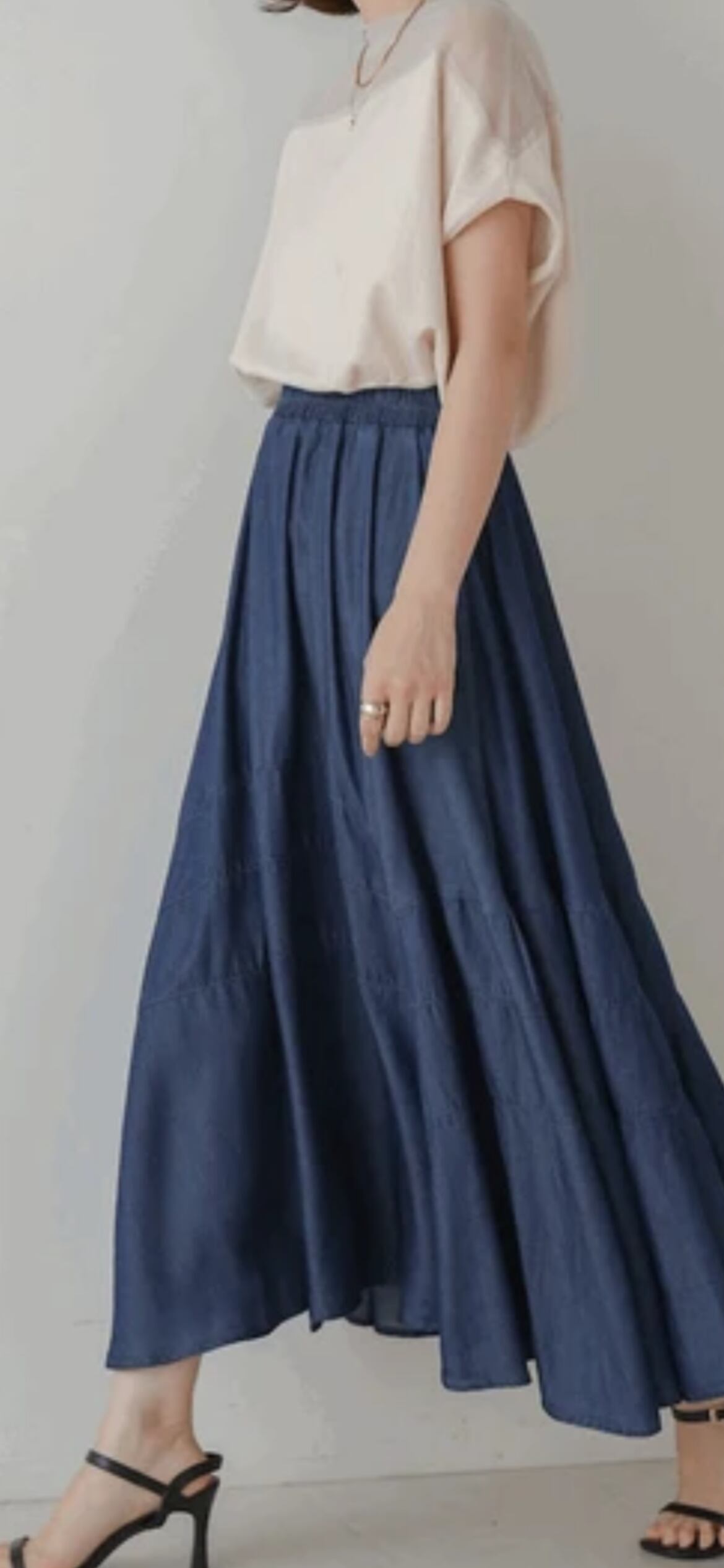 マットな光沢感とドレープが浮き出る綿レーヨンデニムです。