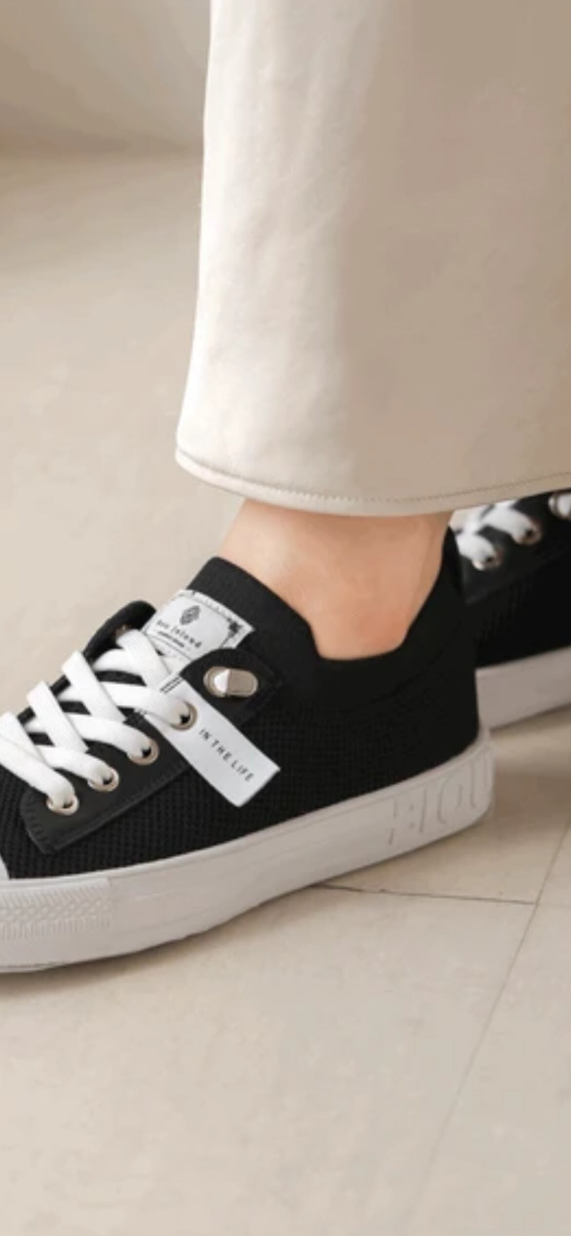 素材に収縮があり、着脱がとても楽ちんなスニーカーです。