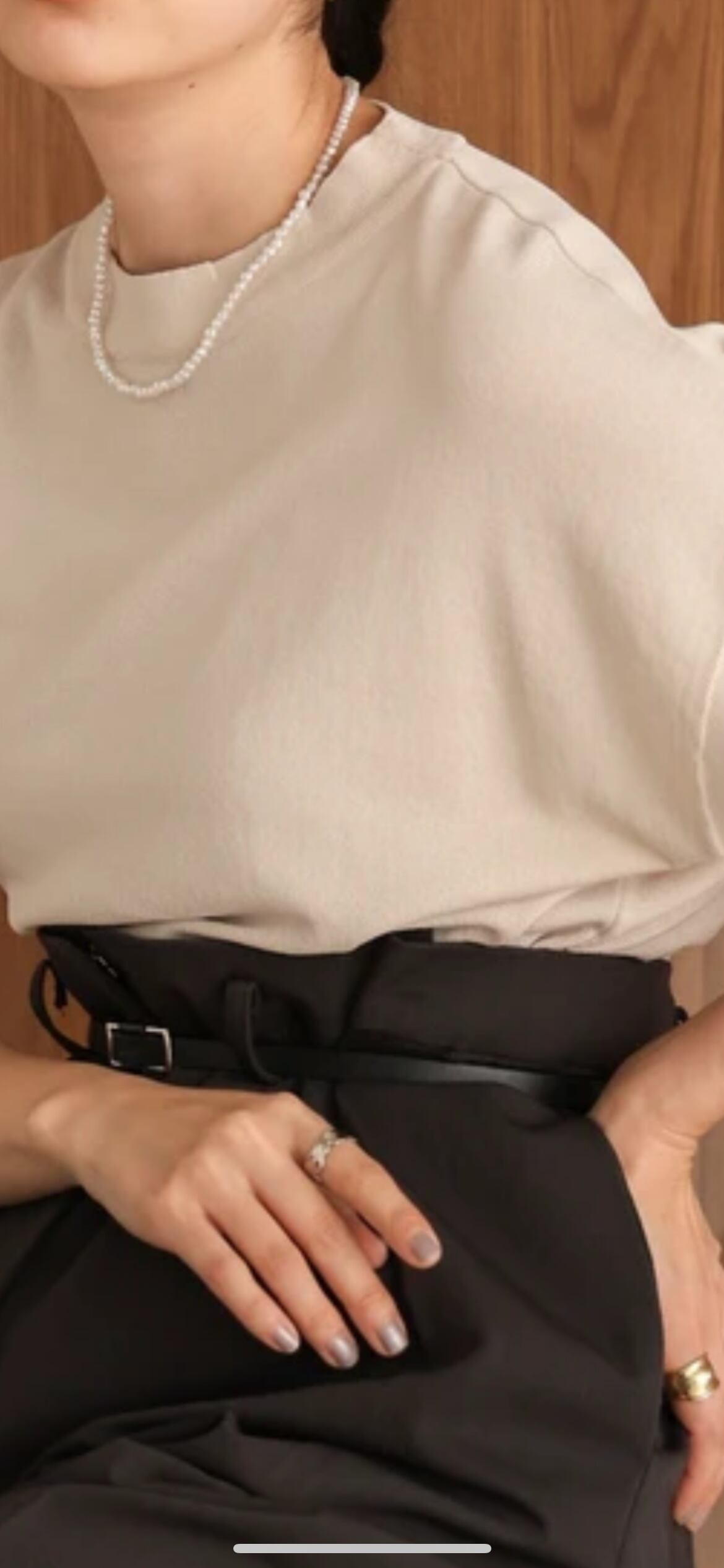 ひんやりした肌触りがこれからの季節にぴったりの 夏のニットトップスが登場しました!知的なモックネックと二の腕をほっそり見せるフレンチスリーブが好印象な1枚。すとんと落ち感がよくシンプルなシルエットですが、ボディラインが出ない絶妙なサイジングと腰までの着丈で安心感のある着心地です。ベーシックで飽きが来ず、様々な色展開も楽しいアイテムです。