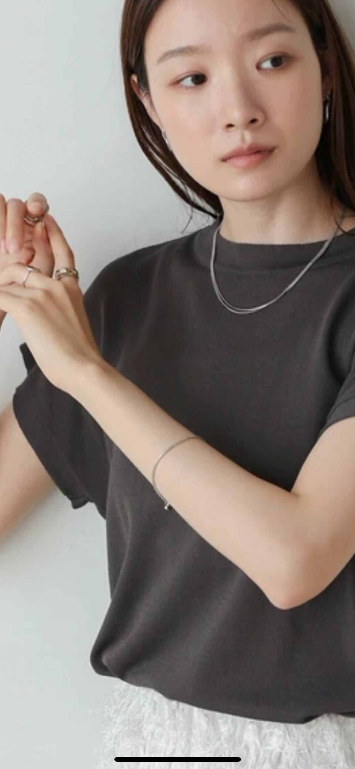夏にぴったりのさらさらしたドライ感のあるニット素材です。ひんやりと清涼感があり、夏場にも気軽にお召し頂けます。