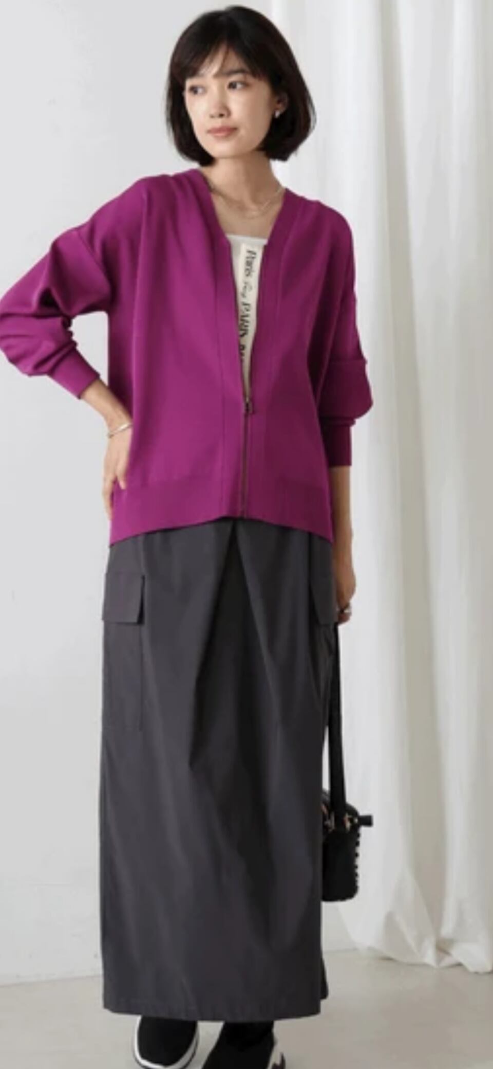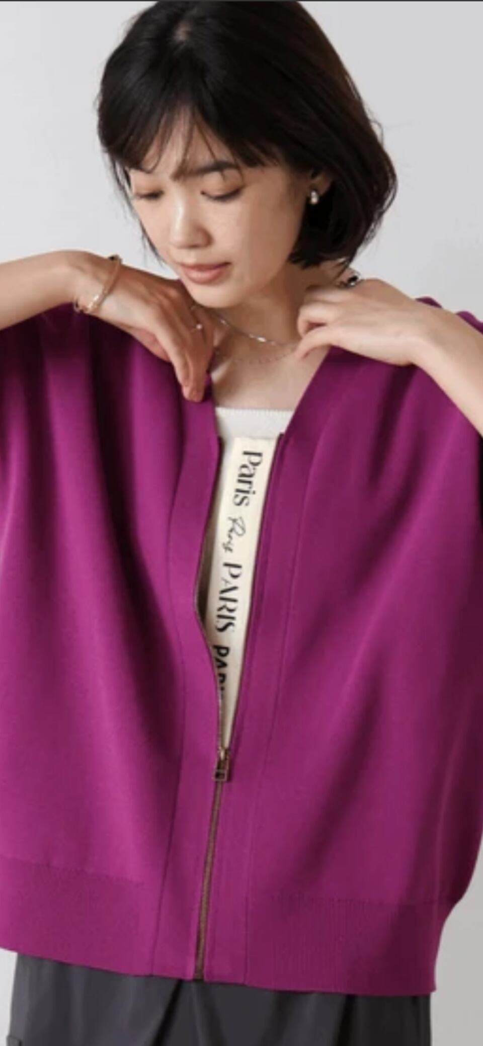 程よい肉感で、タンクトップやキャミ、Tシャツなどの上から羽織って軽アウターとしてもオススメです。