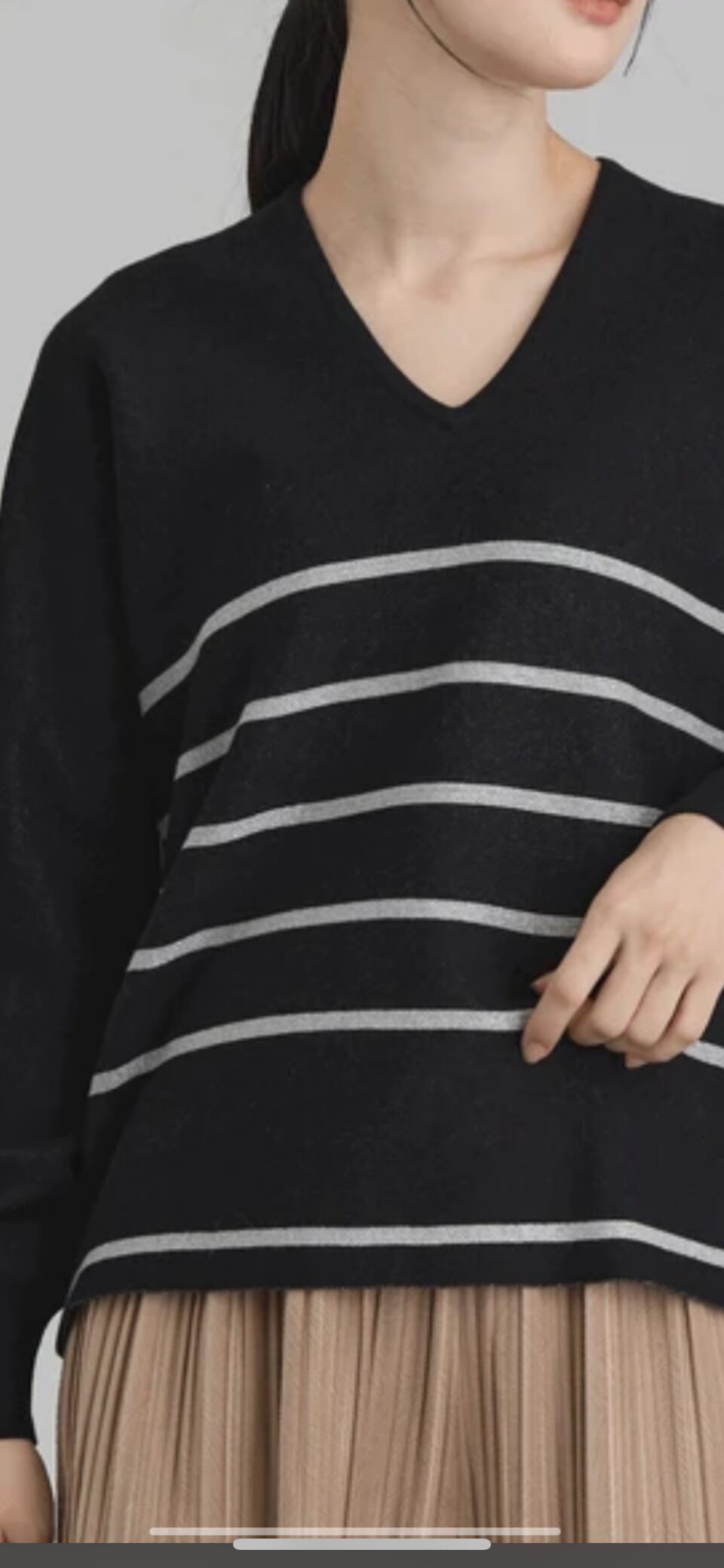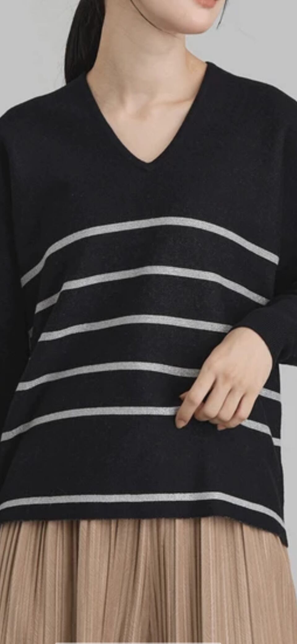 ラメボーダーVネックプルオーバー