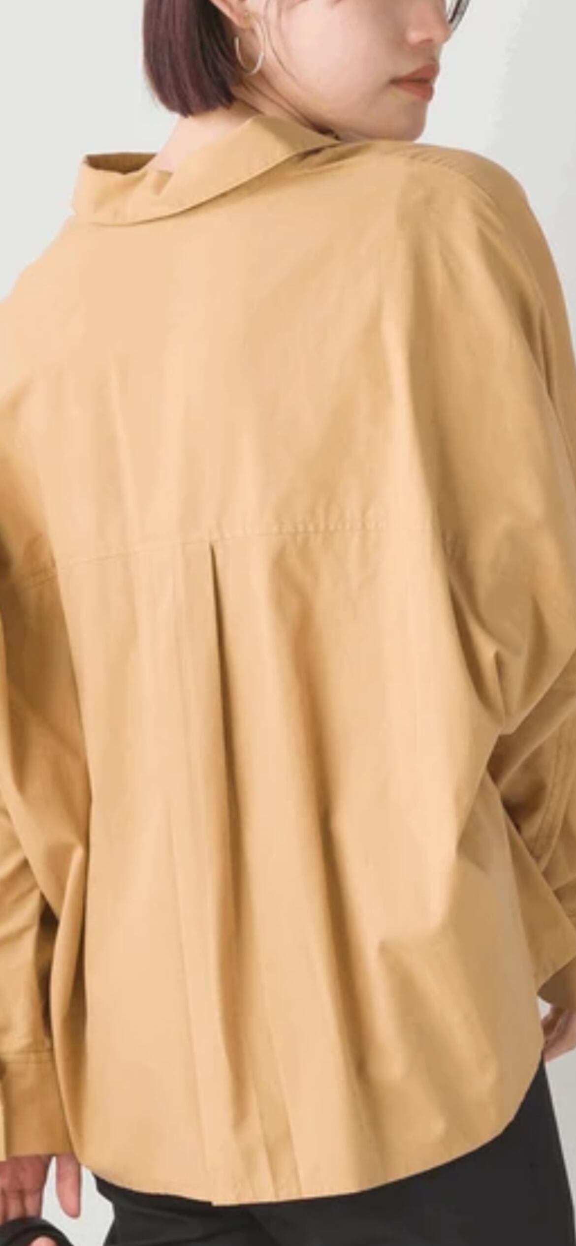 身頃に施したタックデザインにより、構築的なシルエットに。袖はドルマン調のデザインで、身幅は程よくゆとりのあるサイズ感です。衿抜きで着てもおしゃれに決まります。