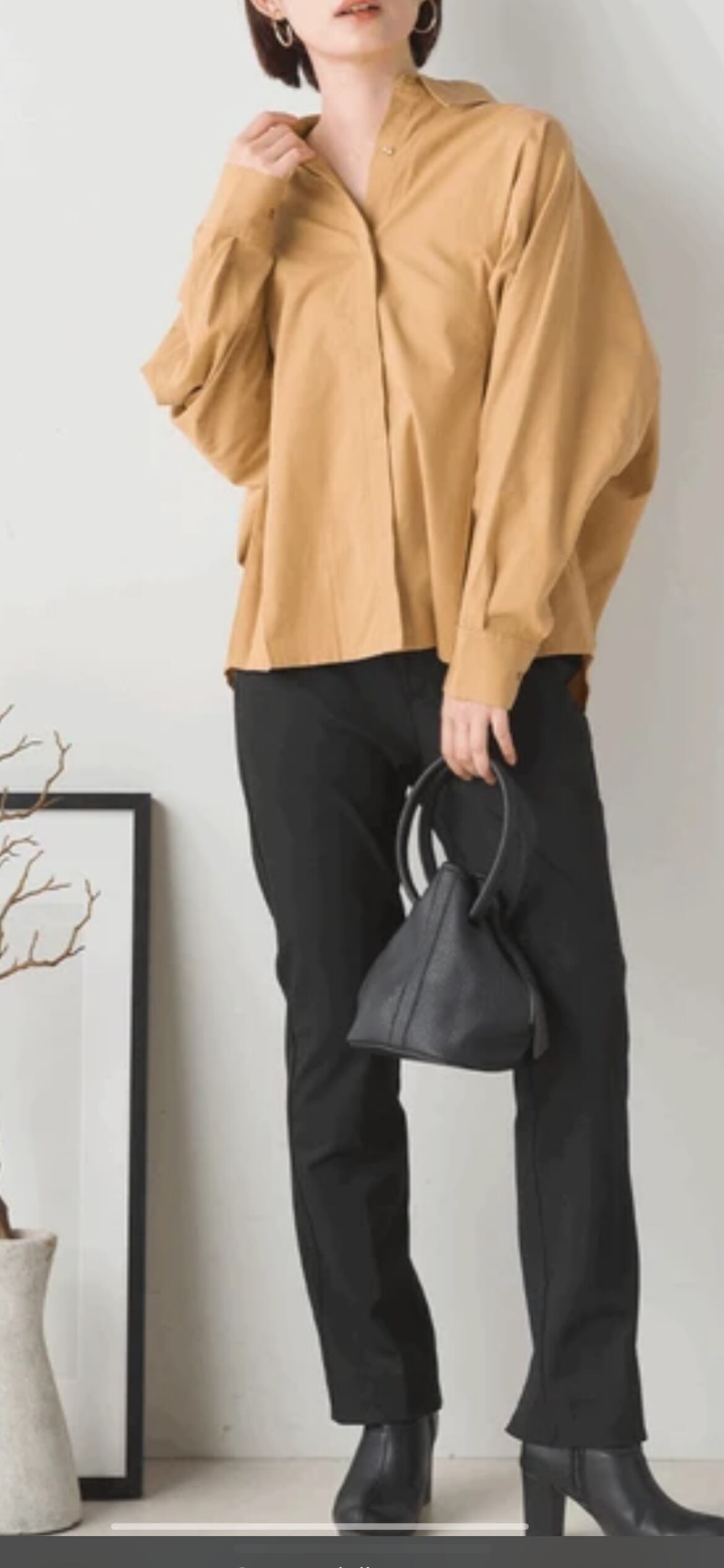 オフィス着でも普段着でも使える、シーンを選ばない万能なブラウスです。