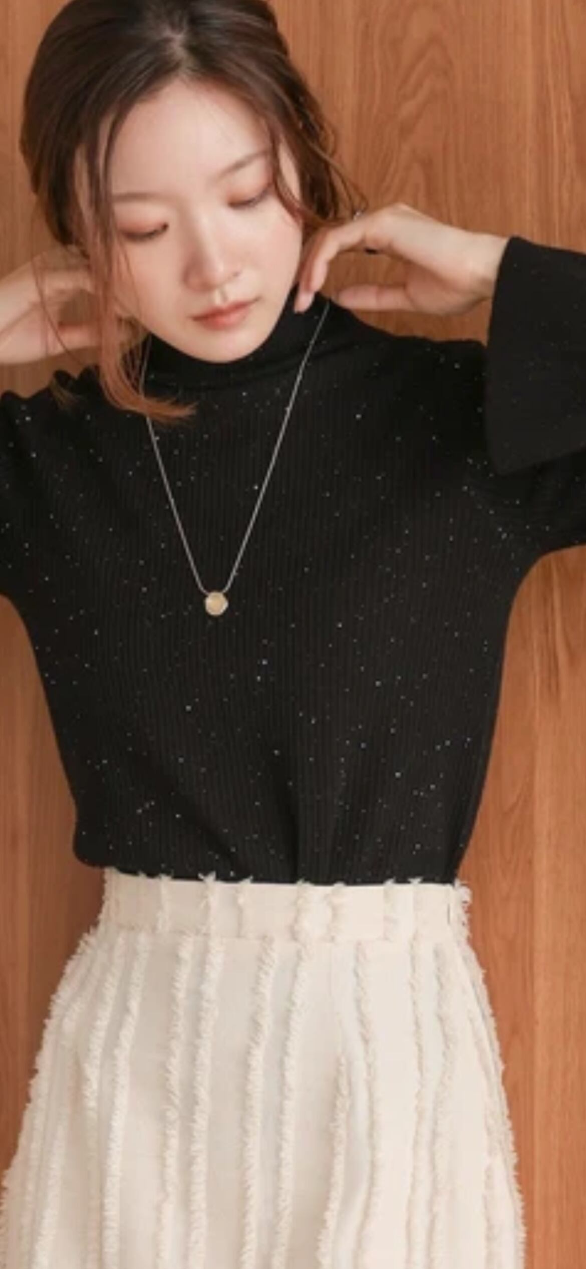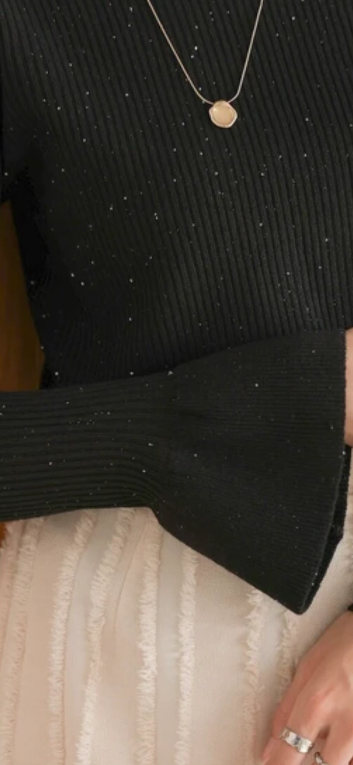 スパンコールハイネック ラメリブニット