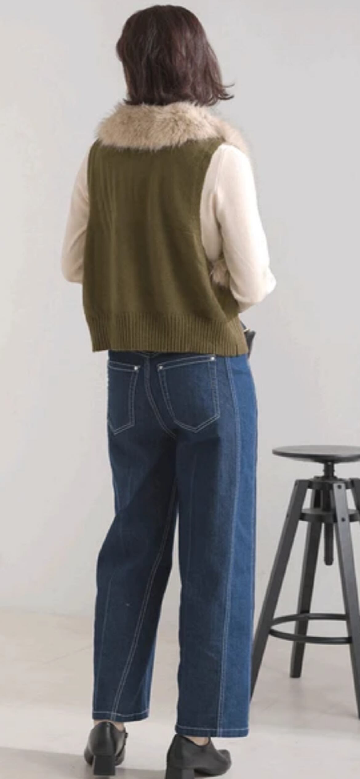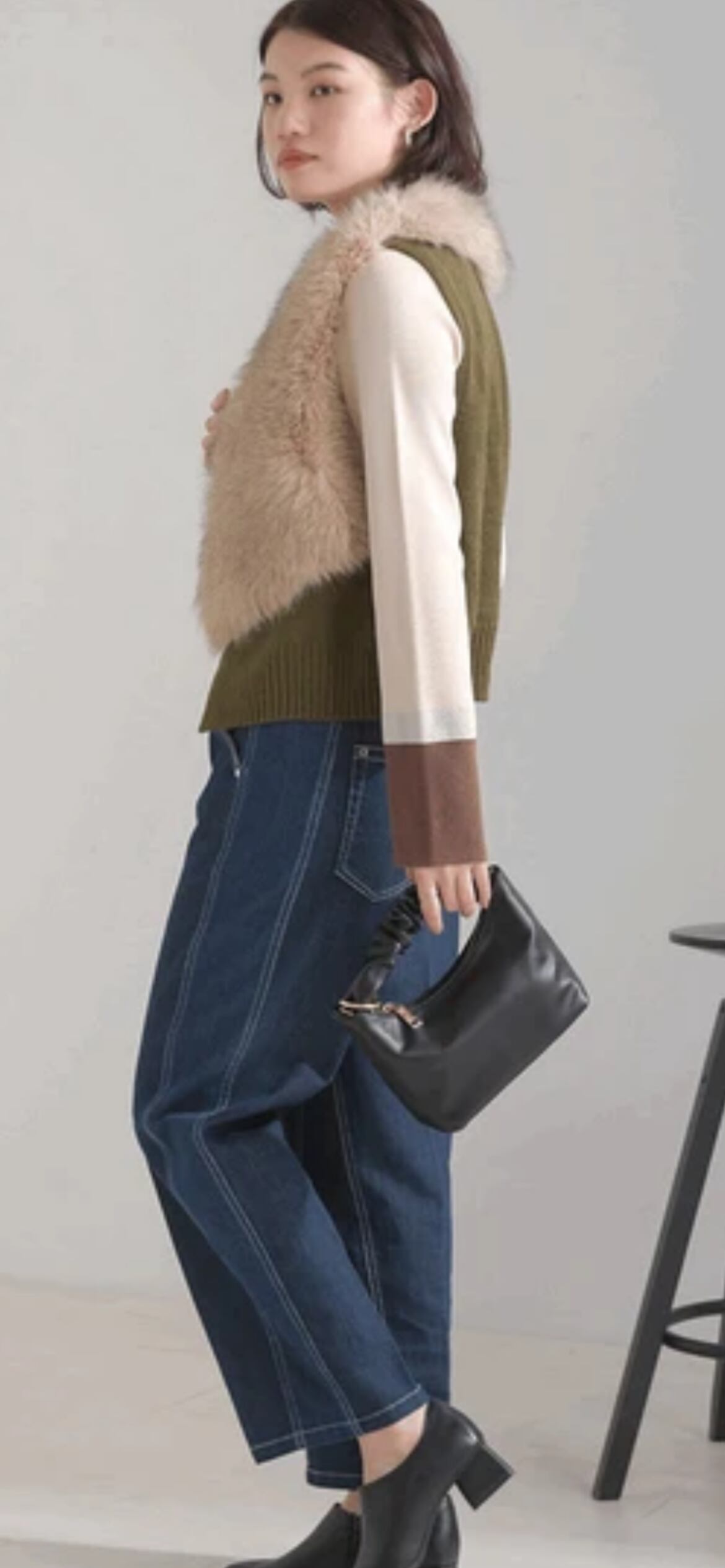 ファーの切り替えをあえて短く、斜めにカットしているのでファー膨らみでで着ぶくれ感が出ずらいファーアイテムです。