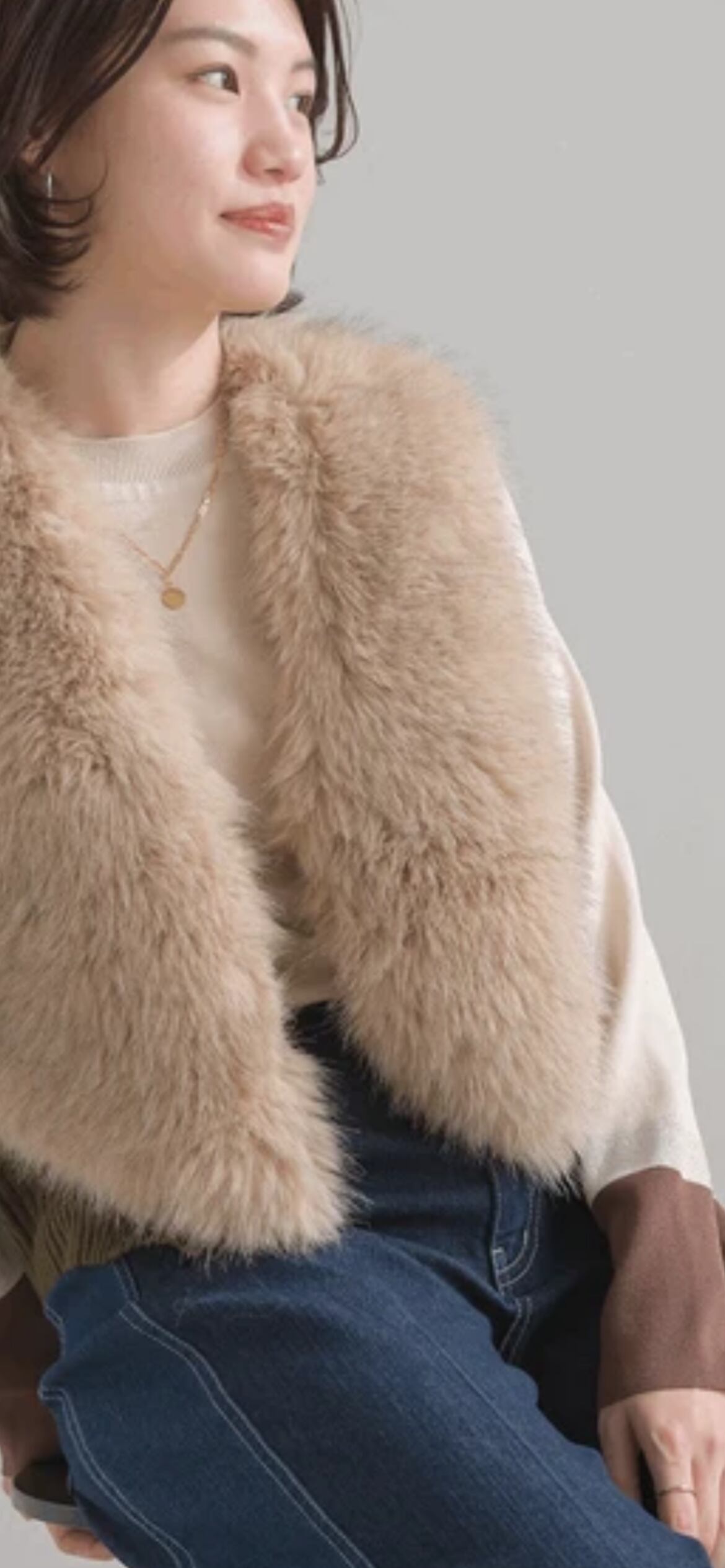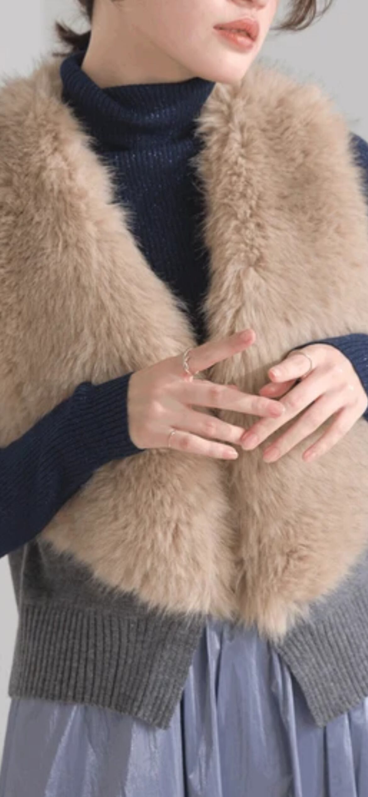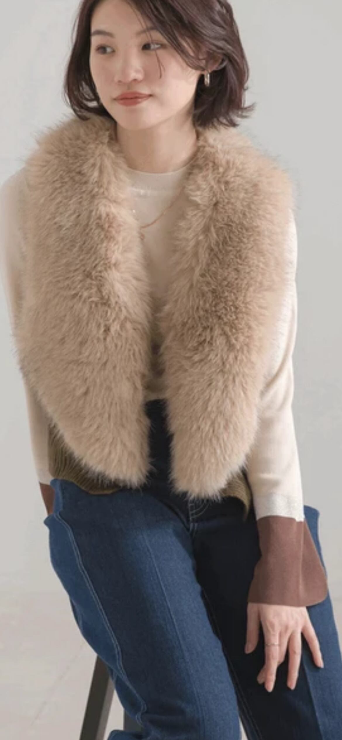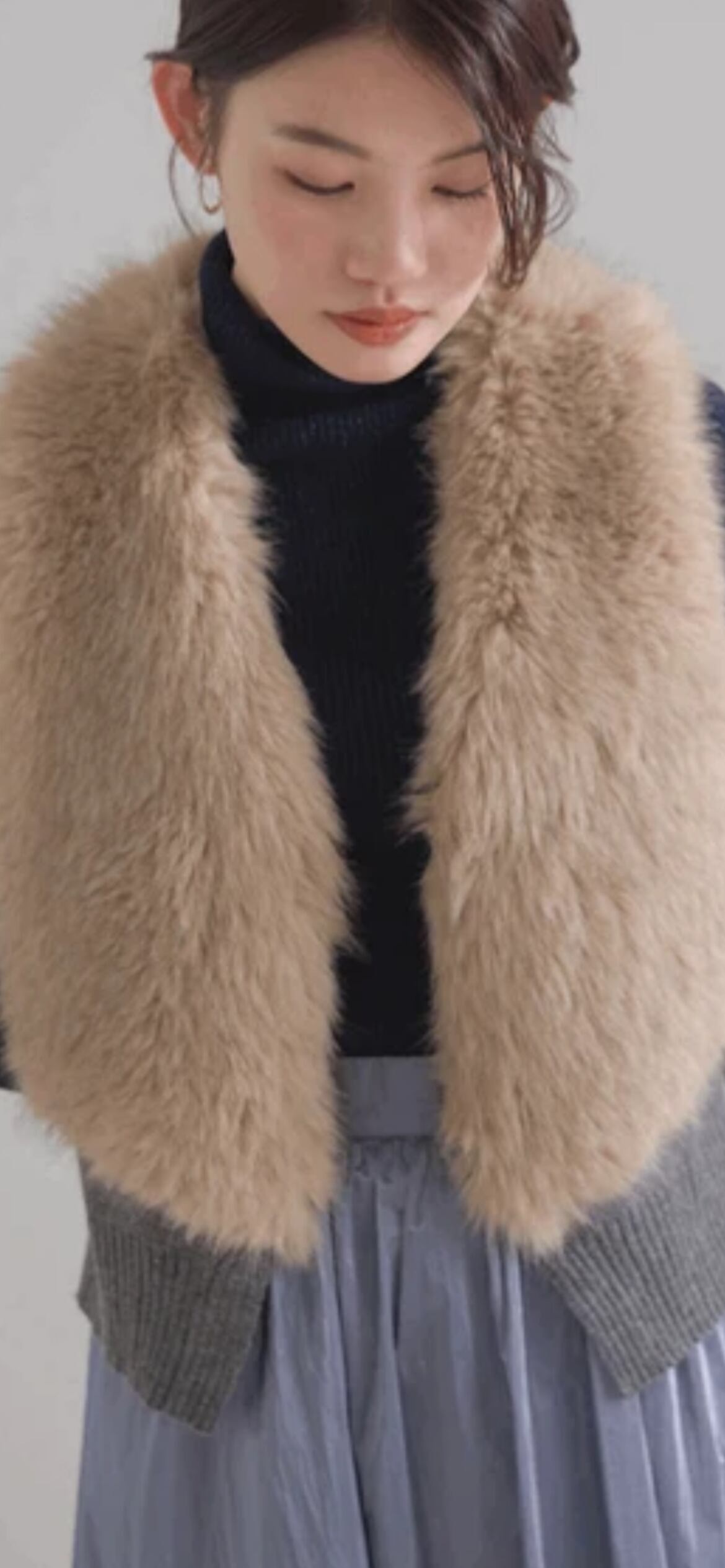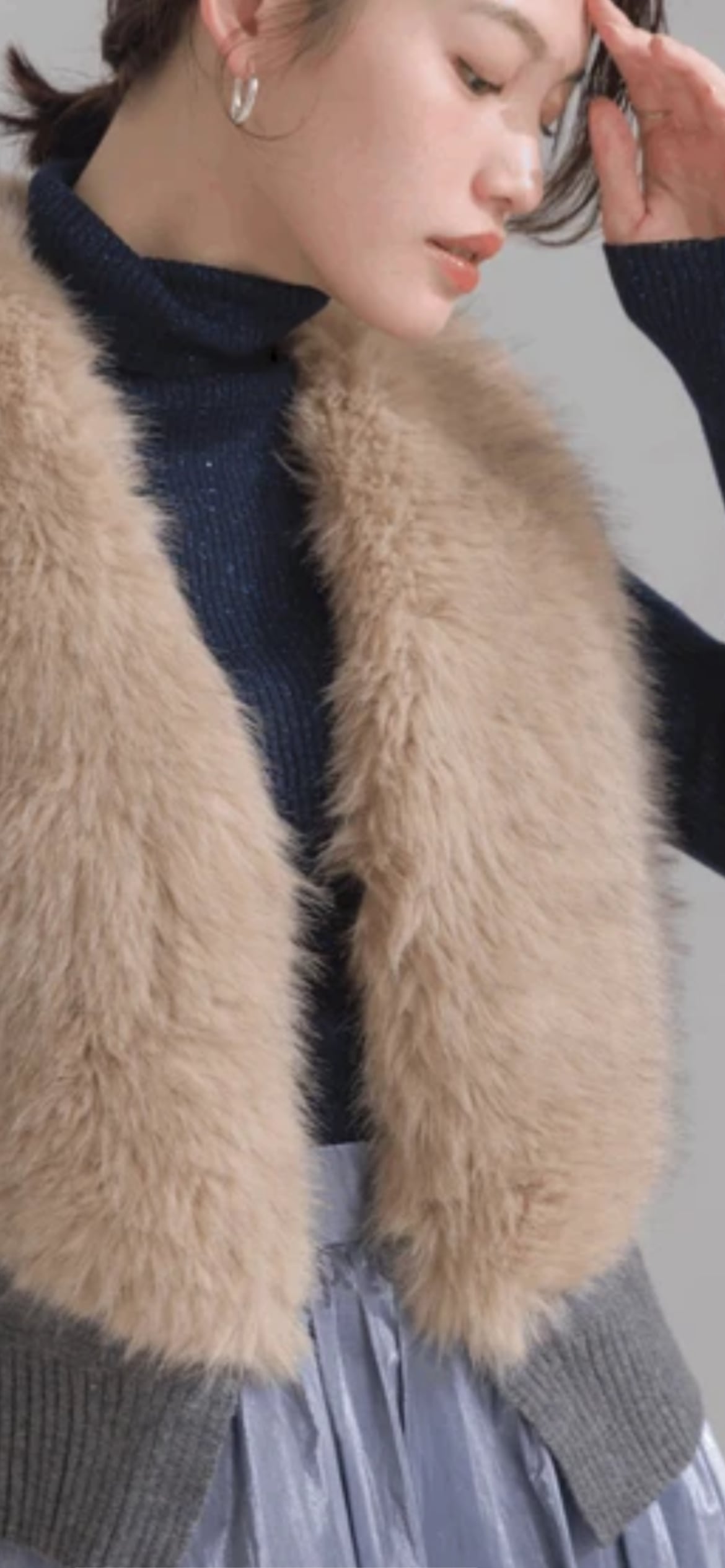アウターを着た時に前端からチラチラとファーが見え隠れするのもワンランク上のレイヤードの着こなしを楽しんで頂けます。