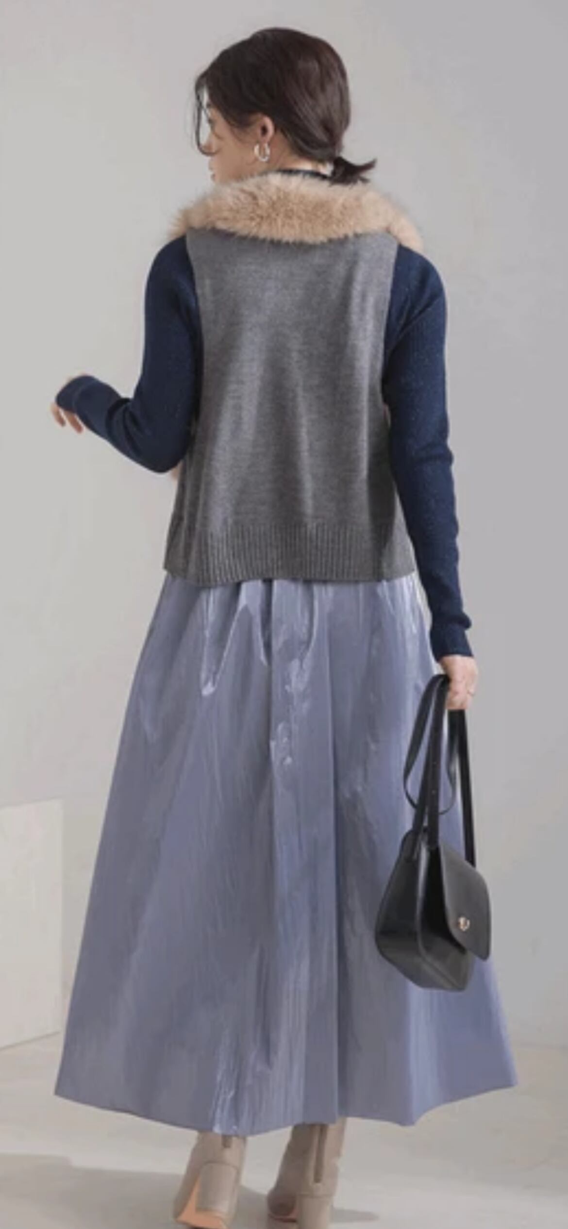 フェイクファーですが、変な安っぽさはなく大人の着こなしにぴったりな素材感です。