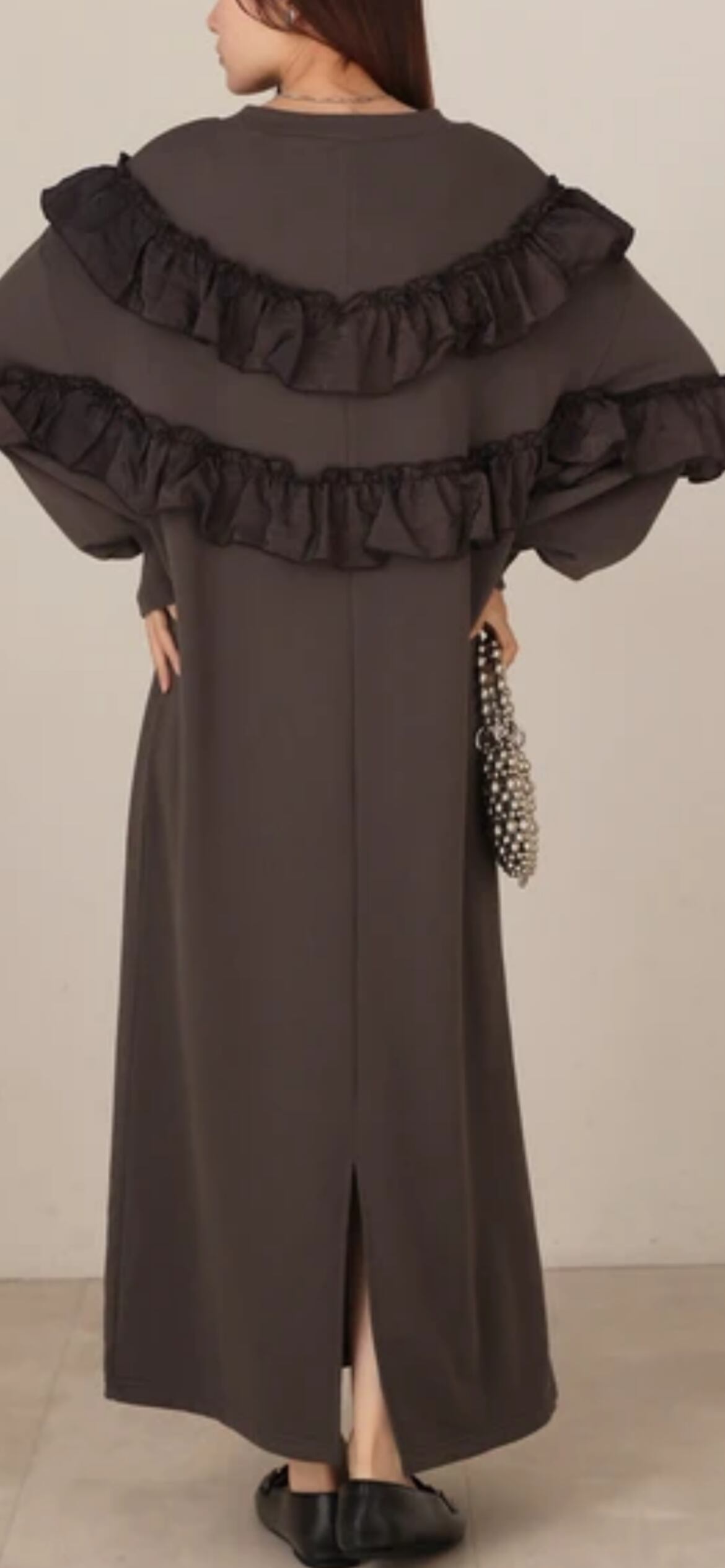 ぱっと被るだけで見た目と着心地の両方を満足させてくれる優秀ワンピースが新登場です!フリル部分は角度で表情が変わるクラッシュサテンを採用し、背中の方までぐるっと縫い付けられているので360度着映えるアクセントに。本体のワンピースは中肉の裏毛素材で柔らかくしなやかな着心地。裾はバックスリットの仕様で足さばきも軽やかです。カジュアルとキレイめの良いと取りを実現してくれ、コーディネートに迷う忙しい朝にもオススメです。