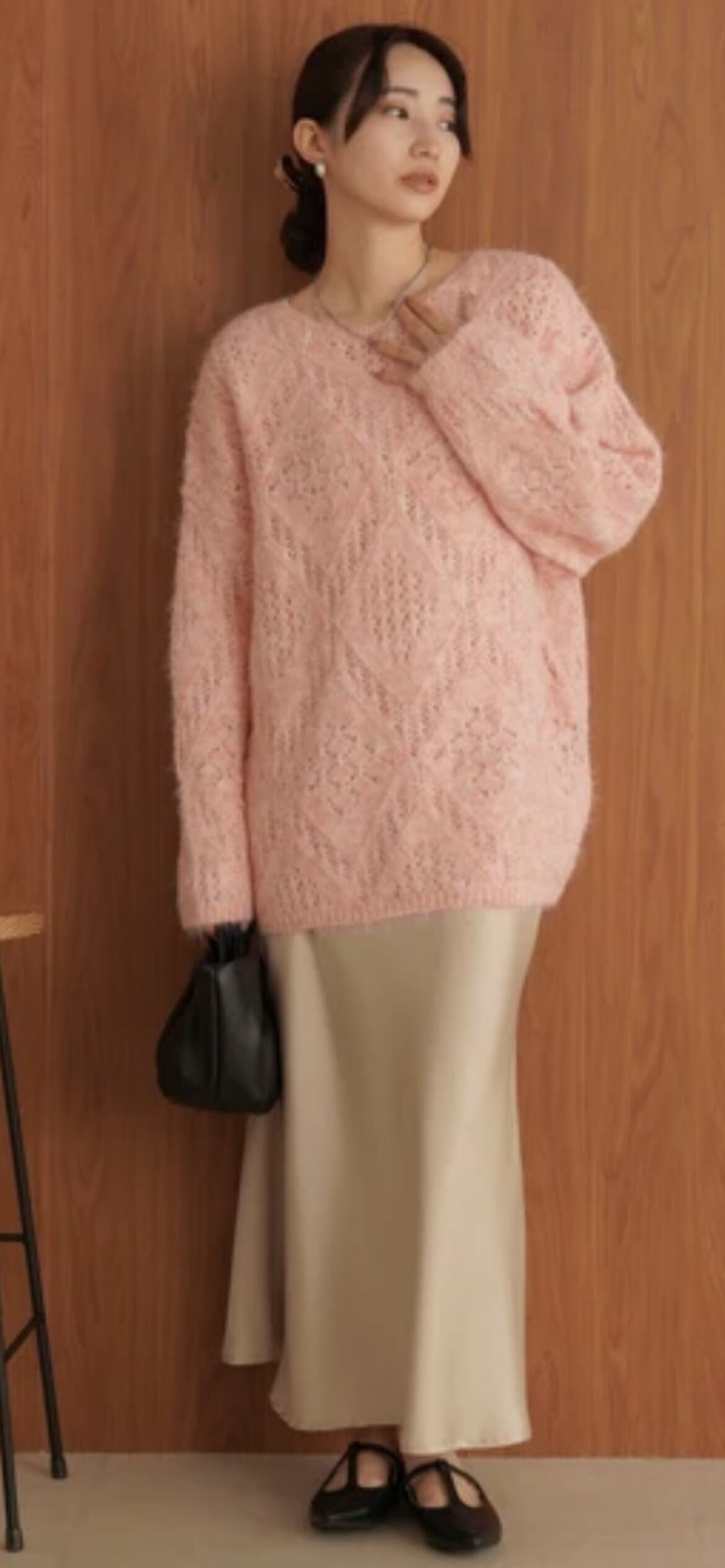 柄編みメランジニット