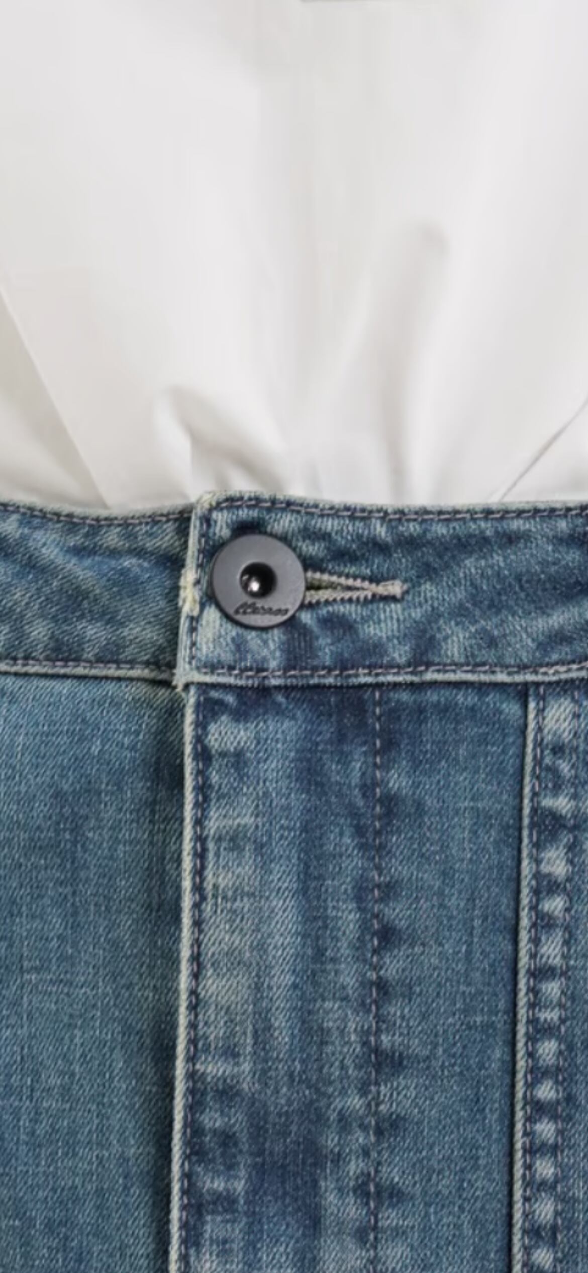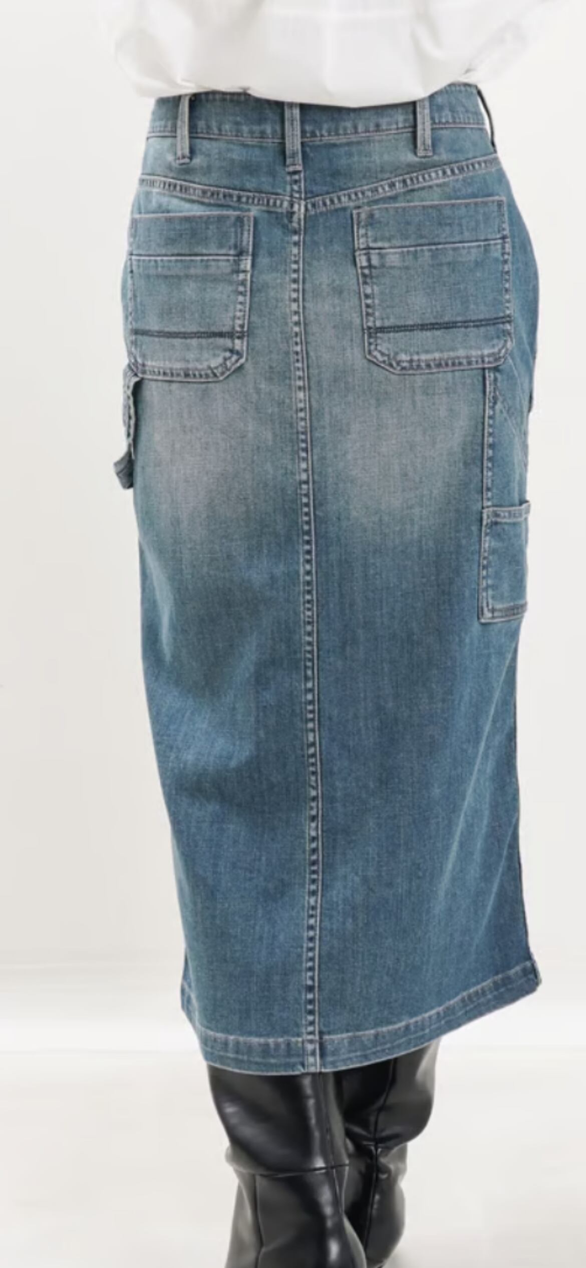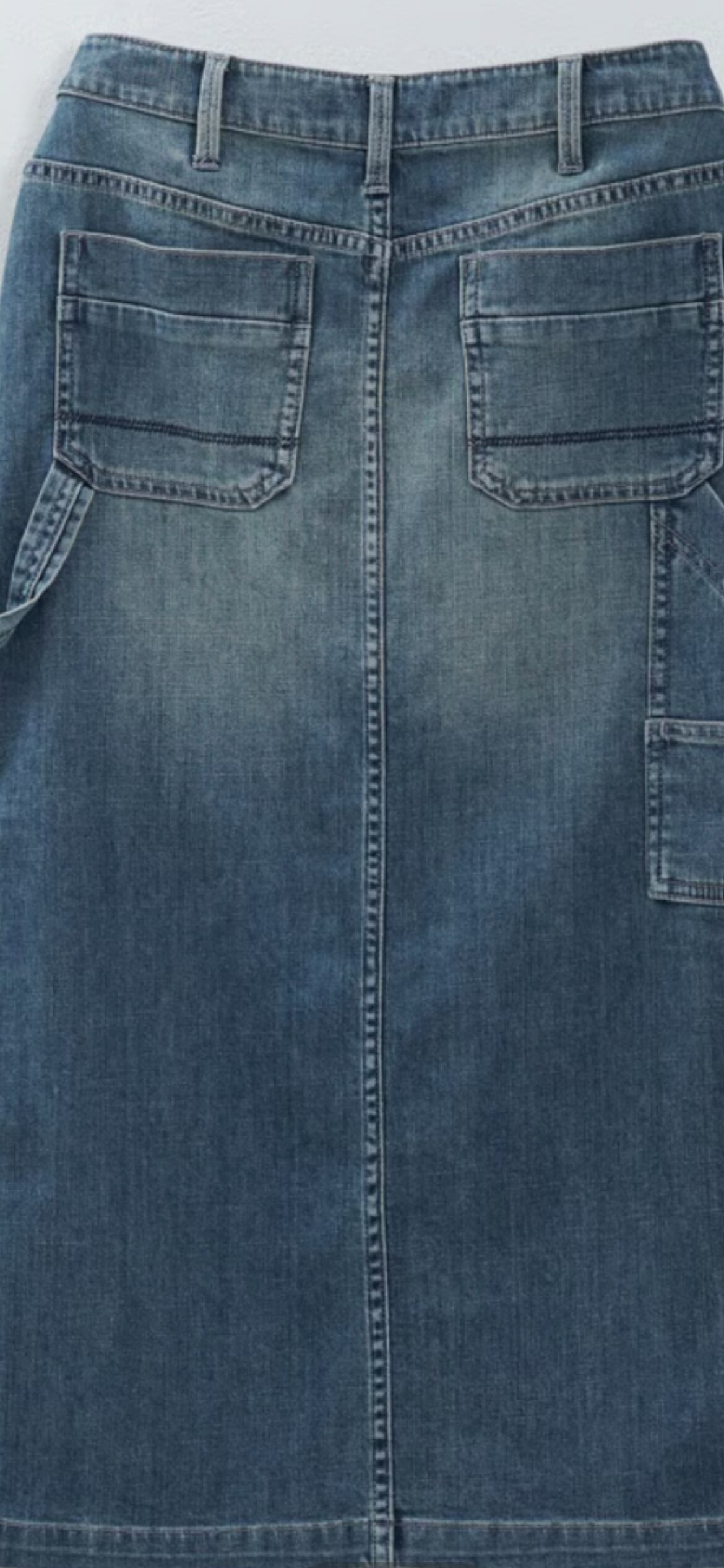 女っぽくカジュアルアップできるデニムタイトスカート。フロントのベンツあきやビッグポケットでトラッド感を加え、接ぎに施したステッチの当たりがビンテージ感を醸し出します。バックポケット下のベルト使いやアシメポケットも他にはないこだわりポイント。コーディネートを一気にハンサム顔に仕上げてくれる1着です。